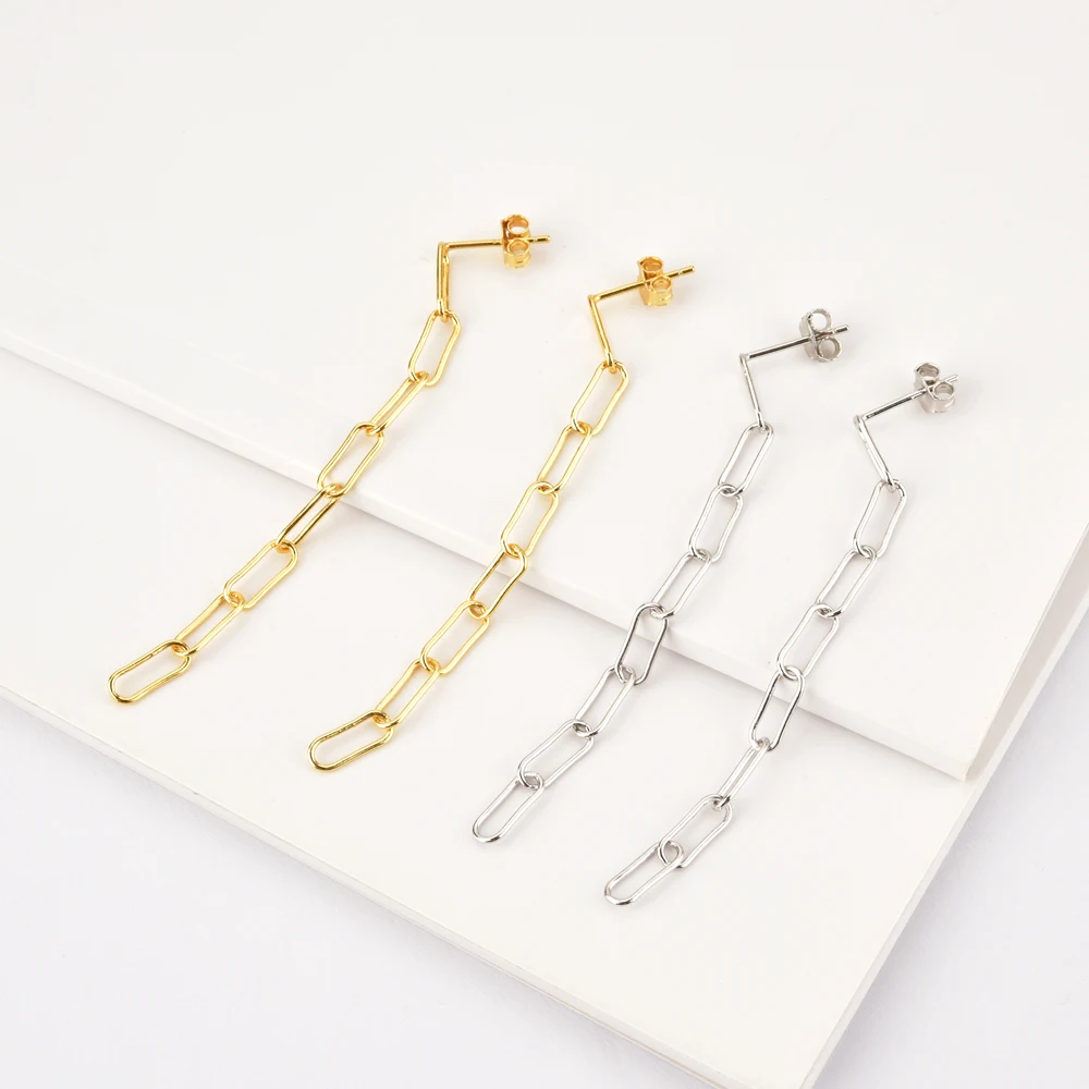 Серьги-гвоздики женские длинные из серебра 925 пробы, 65 мм