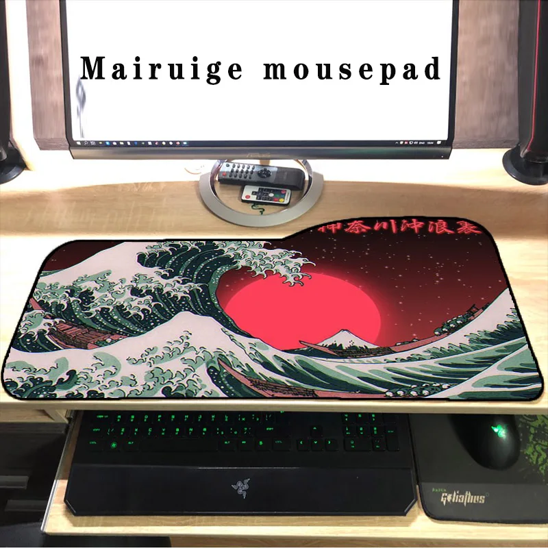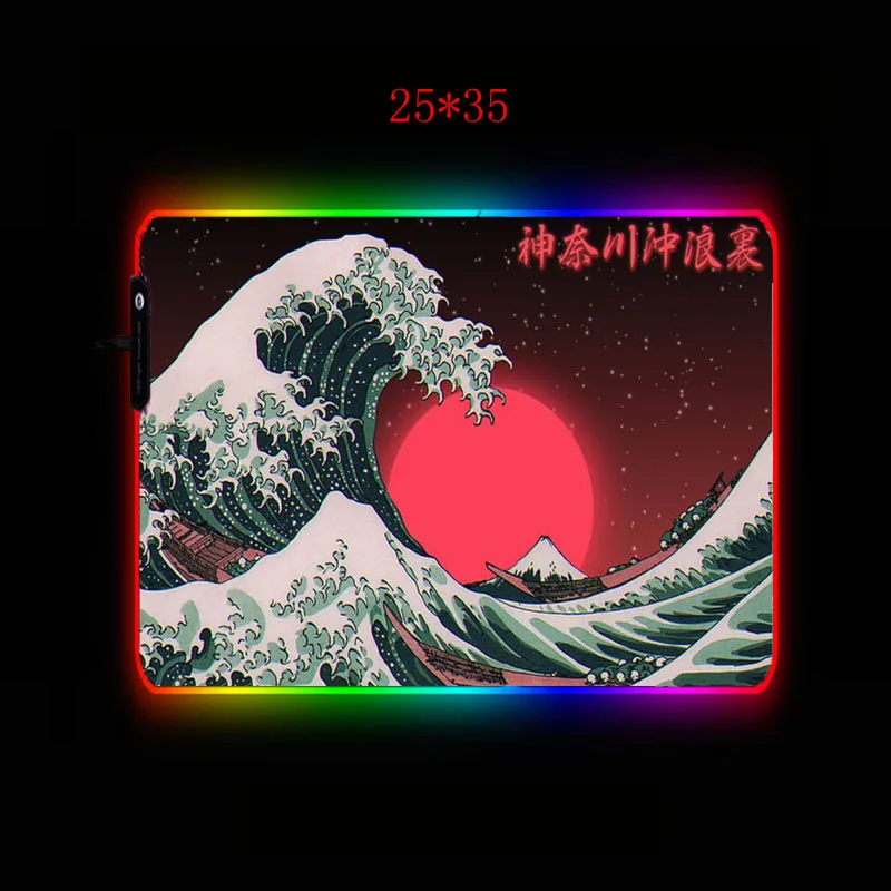 Коврик для мыши Japan Art Great Wave RGB, большой игровой коврик для мыши со светодиодной подсветкой, резиновый Настольный коврик для клавиатуры, различные размеры, сделай сам, 14 цветов