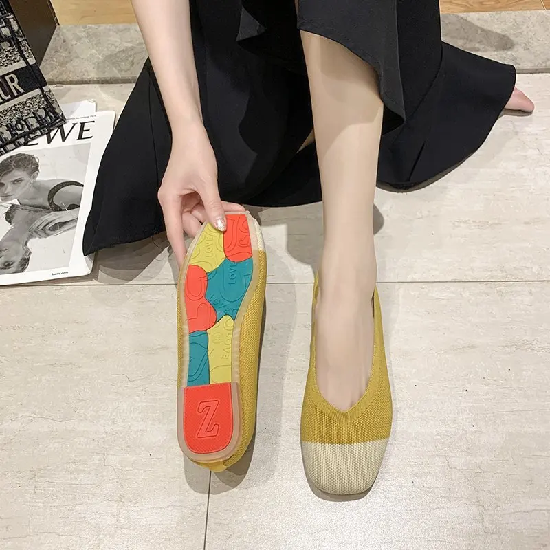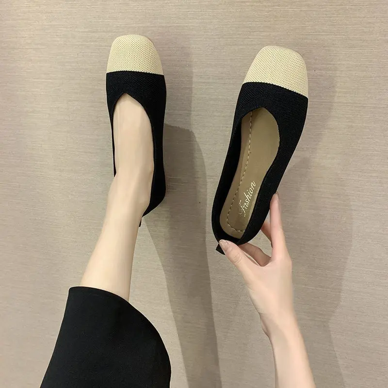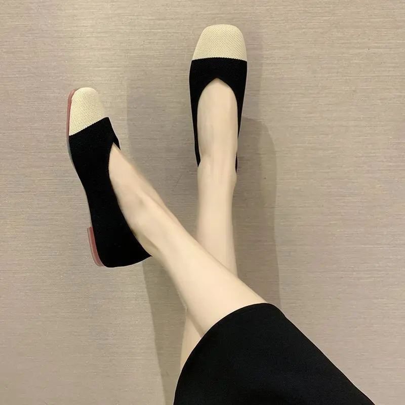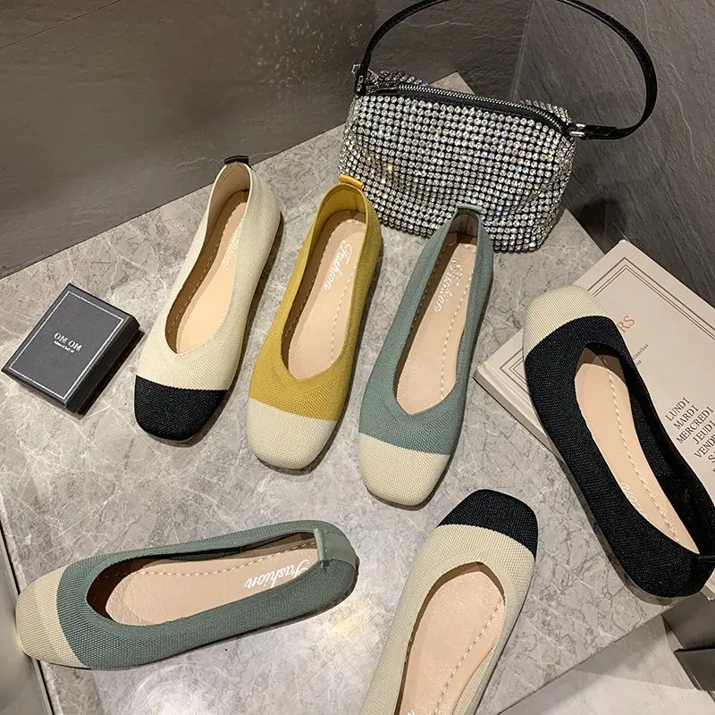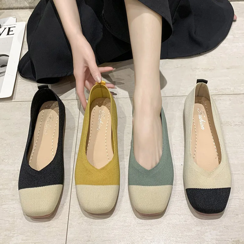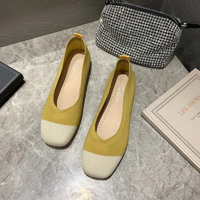 Женская обувь из эластичной ткани на плоской подошве; Разноцветные Вязаные слипоны на плоской подошве; Женские лоферы; Удобная женская обувь с закрытым носком; Модная обувь; Модель 2020 года; 8487C