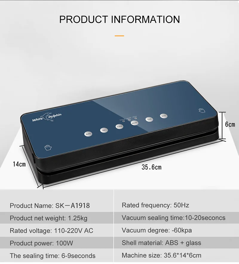 Вакуумный упаковщик White Dolphin, 10 пакетов в комплекте, 220 В, 1...