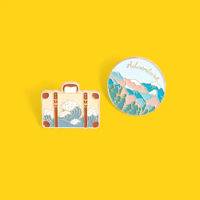 Дорожная сумка эмалированная булавка в виде гор и океанских волн, б...