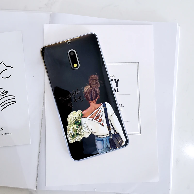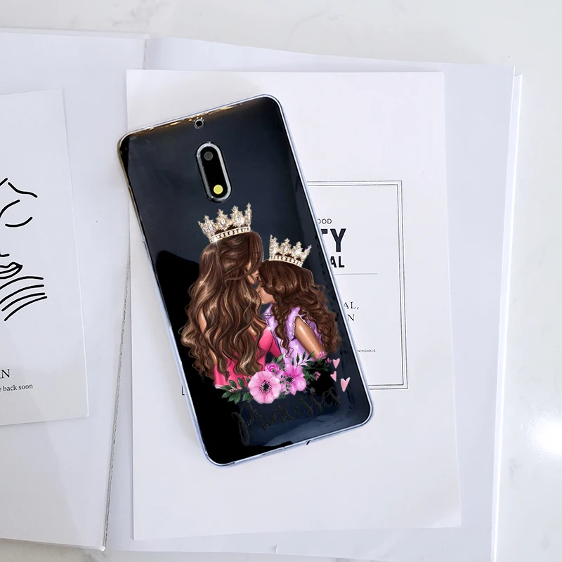 Милый черный чехол для Nokia X6 7 Plus с рисунком из мультфильма в стиле ретро для маленьких женщин, мам и девочек, мягкий силиконовый чехол для телефона Nokia 1, 2, 3, 5, 6, 8, чехол