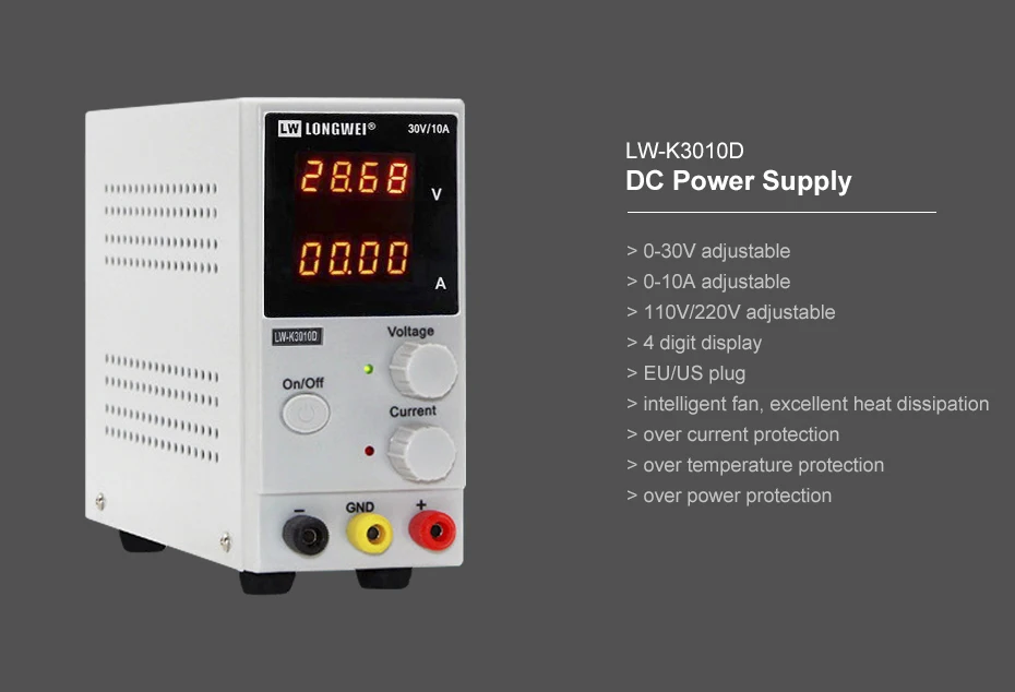 Лабораторный мини-источник питания K3010D, регулируемый лабораторный блок питания с 4-значным дисплеем, 0-30 в, 0-10 А, для ремонта телефонов и ноутбуков