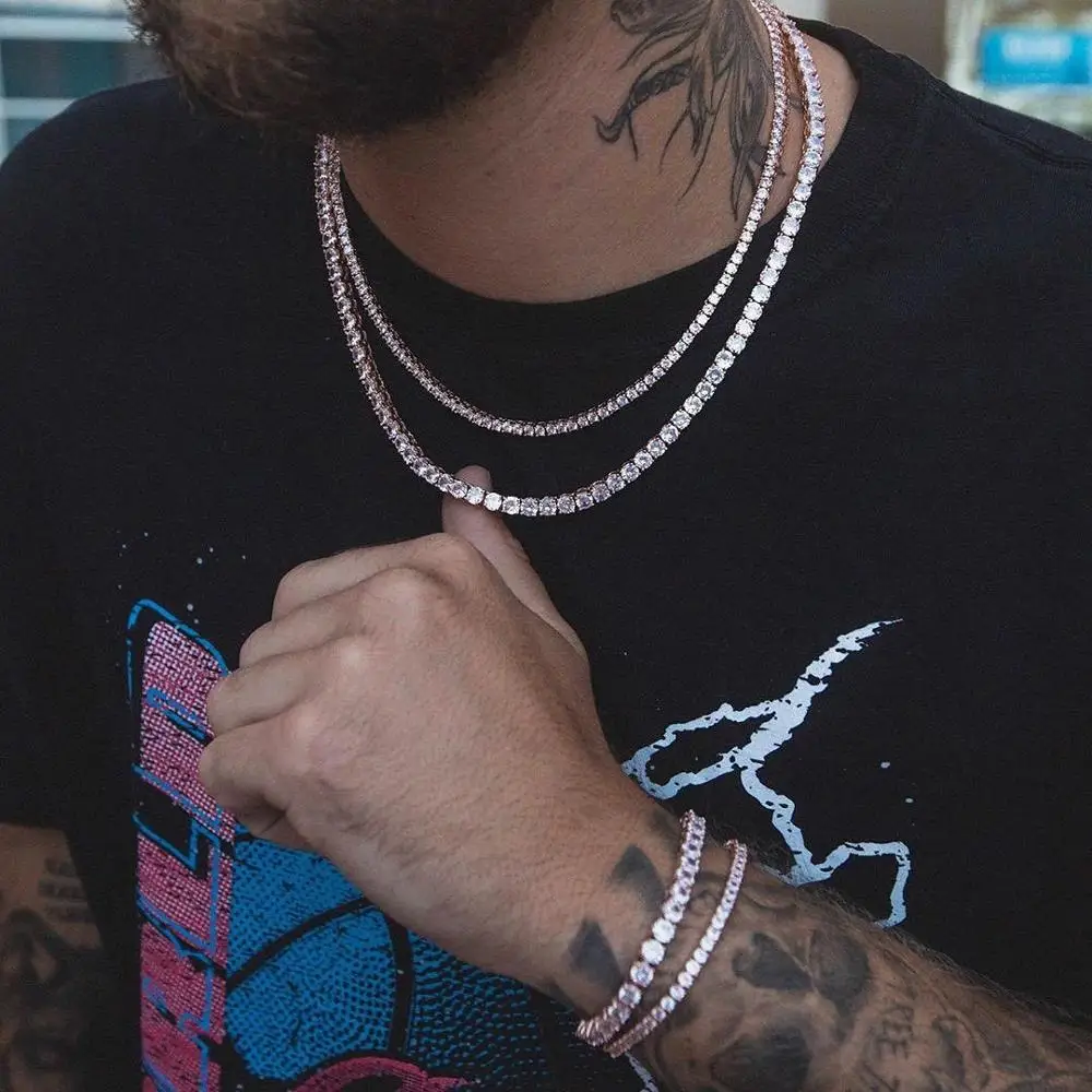 5 мм 5A фианит cz теннис цепи Классический со Льдом bling браслетов и ожерелий в стиле хип-хоп ювелирные изделия для тенниса набор