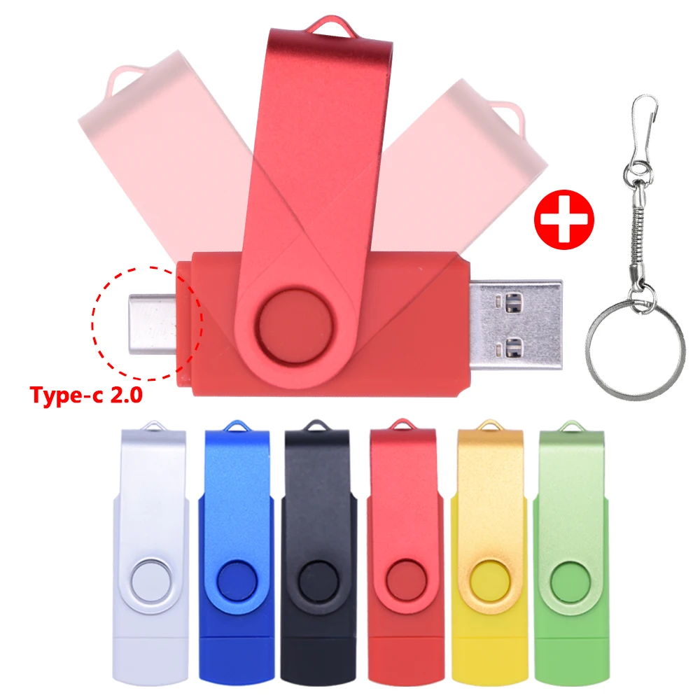 Металлический USB флеш-накопитель 2 в 1, USB 3. 0 Type-C OTG, флеш-накопитель 4 ГБ, 16 ГБ, 32 ГБ, 64 ГБ, 2,0 ГБ, высокоскоростной USB-накопитель, флешки с брелоком