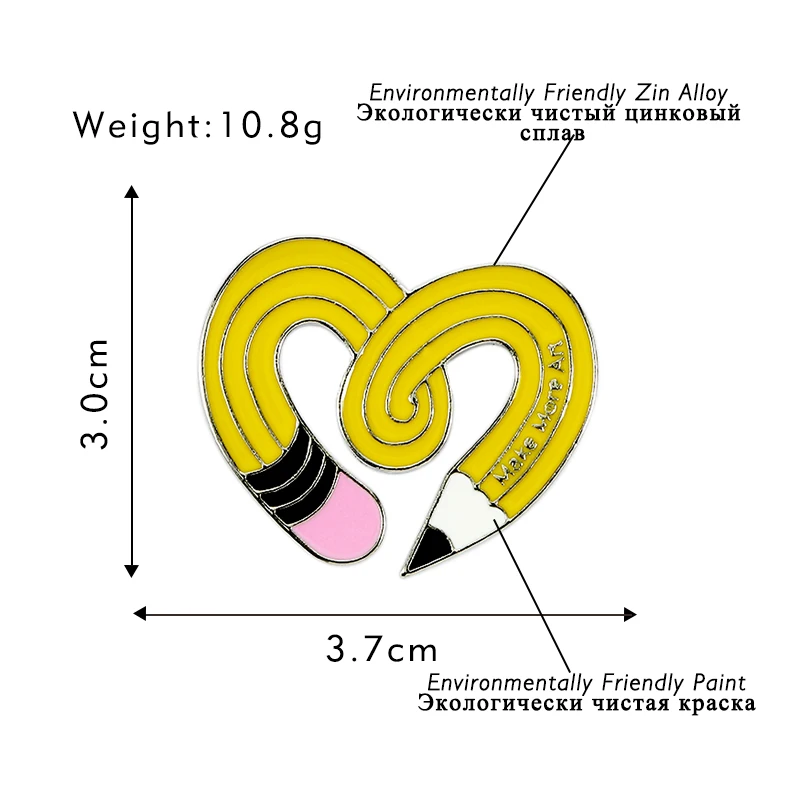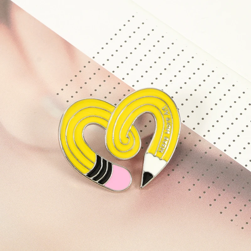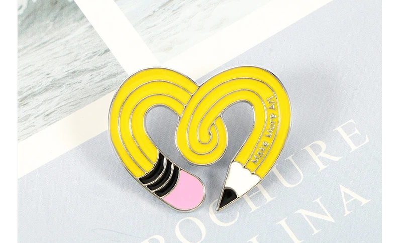 Изогнутый карандаш в форме сердца, эмалированные булавки, сделать больше художественных карандашей, забавная брошь, Значки для художника, для женщин и мужчин, одежда, отворот, булавка, ювелирное изделие