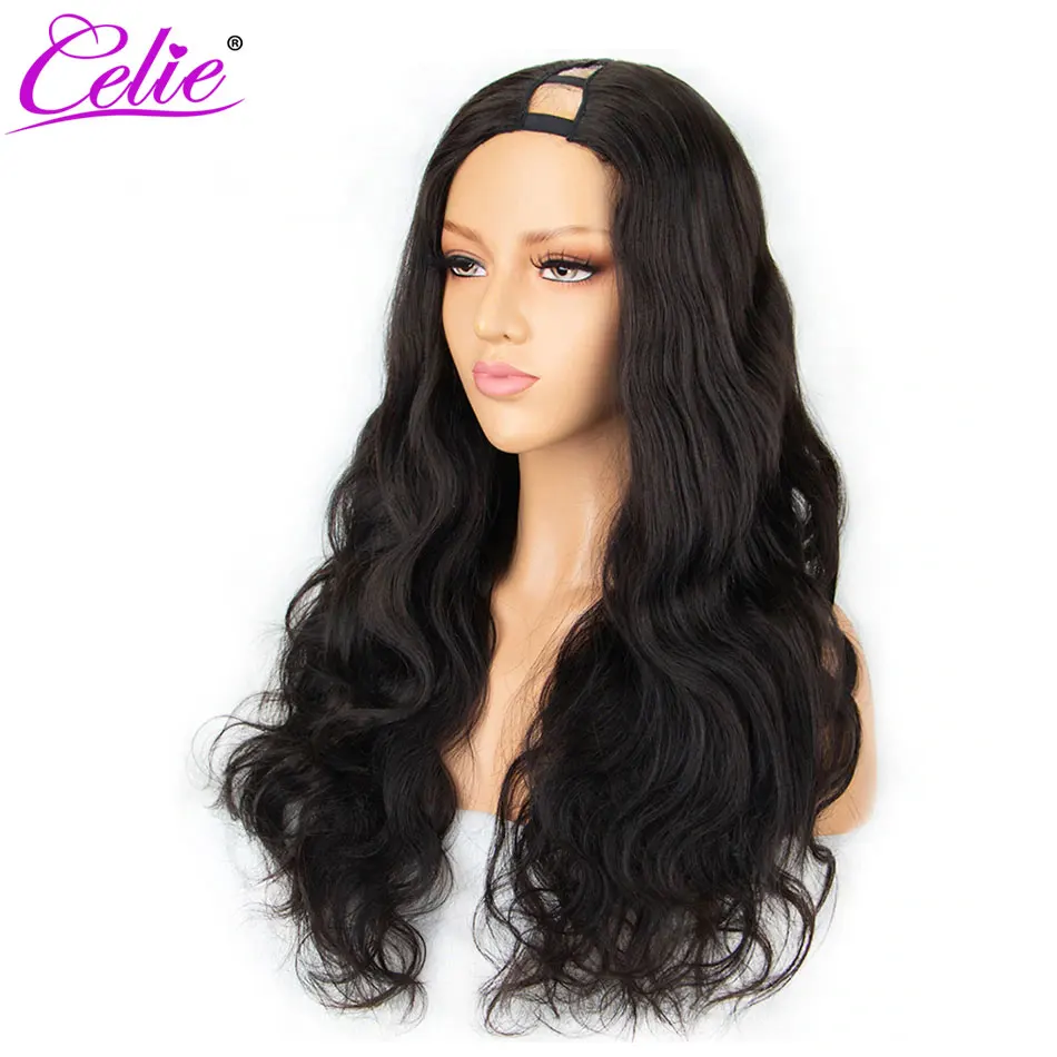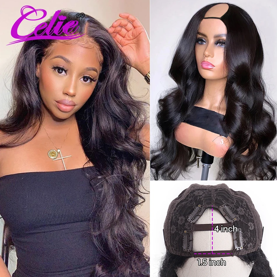 Парик U-образной формы, бесклеевые человеческие волосы, средняяправаялевая боковая часть, волнистые парики для чернокожих женщин, U-образный парик из натуральных волос