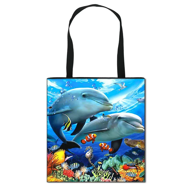 Холщовая Сумка-тоут с принтом Кита/акулы/черепахи, женская сумка через плечо, сумки для покупок, сумки для девочек, сумка для путешествий