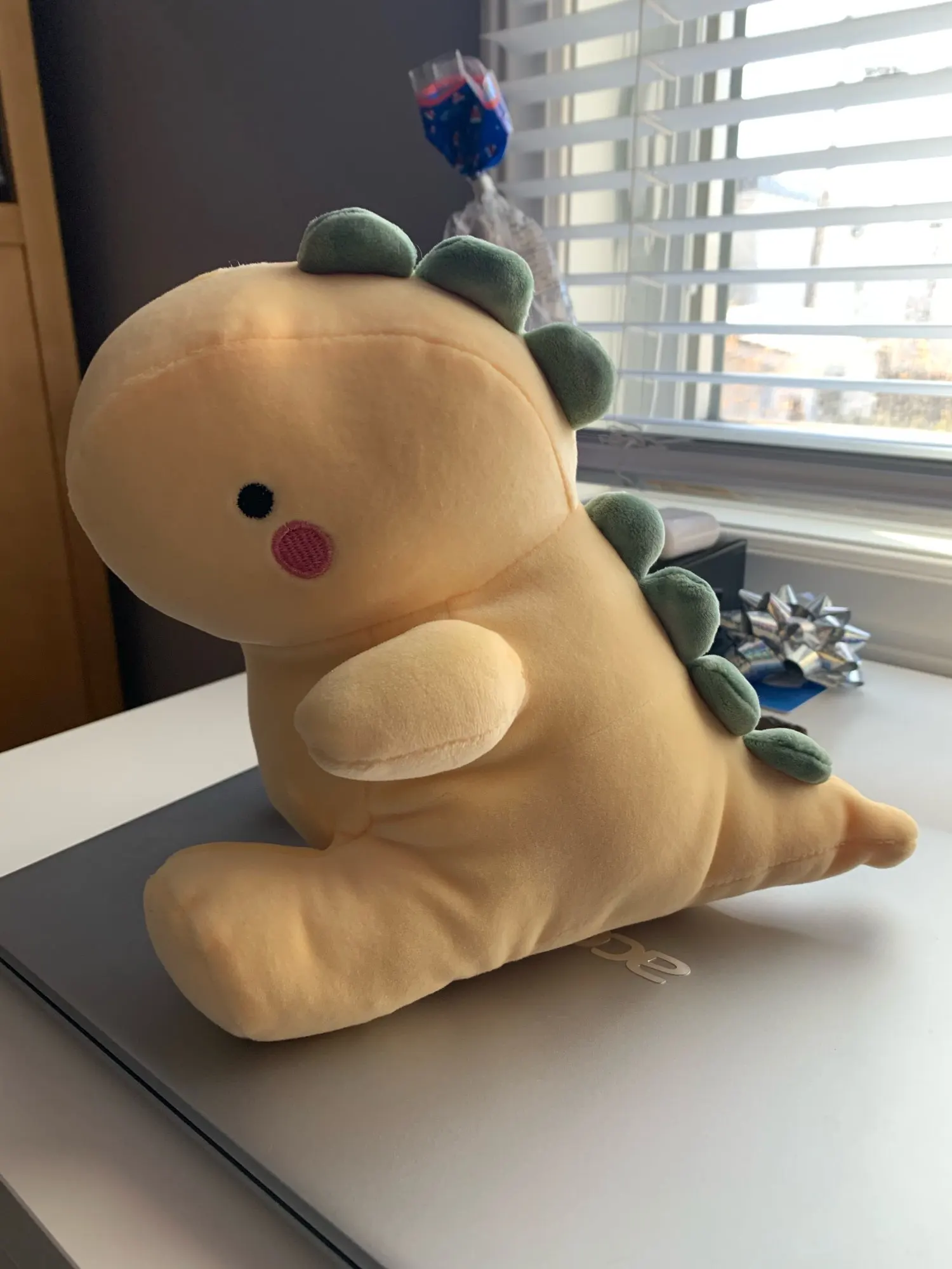 Динозавр очень милый. Я рекомендую получить его, он тоже приятный и мягкий.