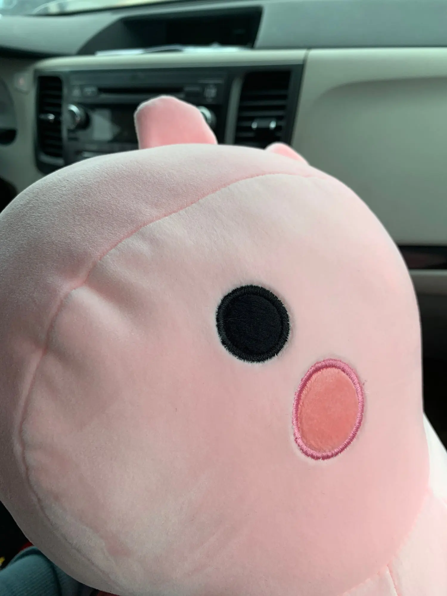 Это очень большой! Я впечатлен. Он мог содержать больше набивки, не очень полный, но он невероятно мягкий. Мне очень нравится. Хотя глаза довольно маленькие и имеют некоторые свободные нитки. Но я на самом деле не против.