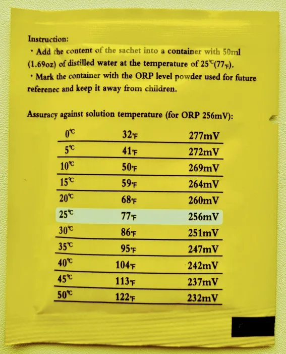 Этот порошок можно настроить с помощью калибровочной жидкости 256 мВ ОВП Обратите внимание: изделие не включает тестовую ручку на картинке, это форма для демонстрации Функции порошка