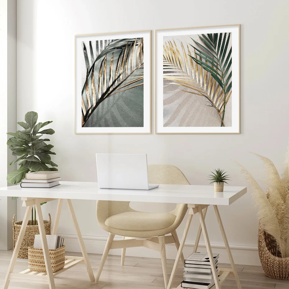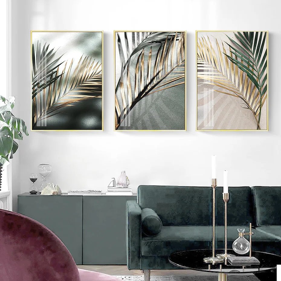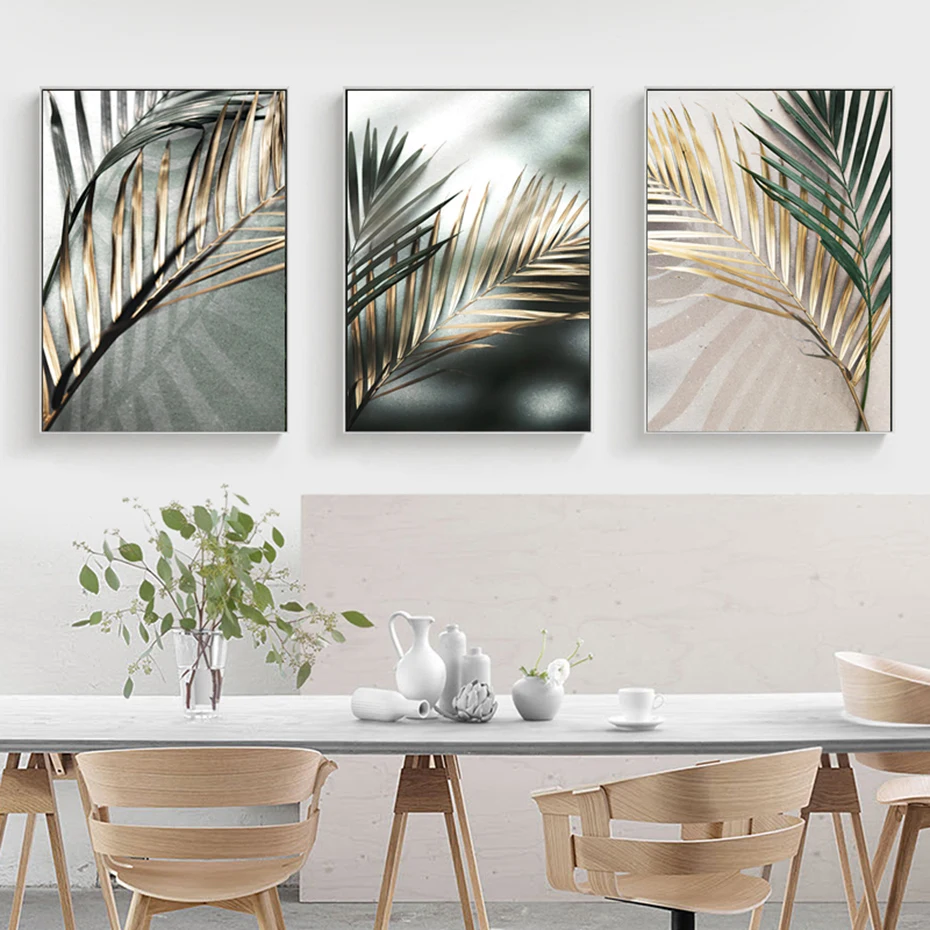 Постеры на холсте, с золотыми и зелеными листьями, в скандинавском ...