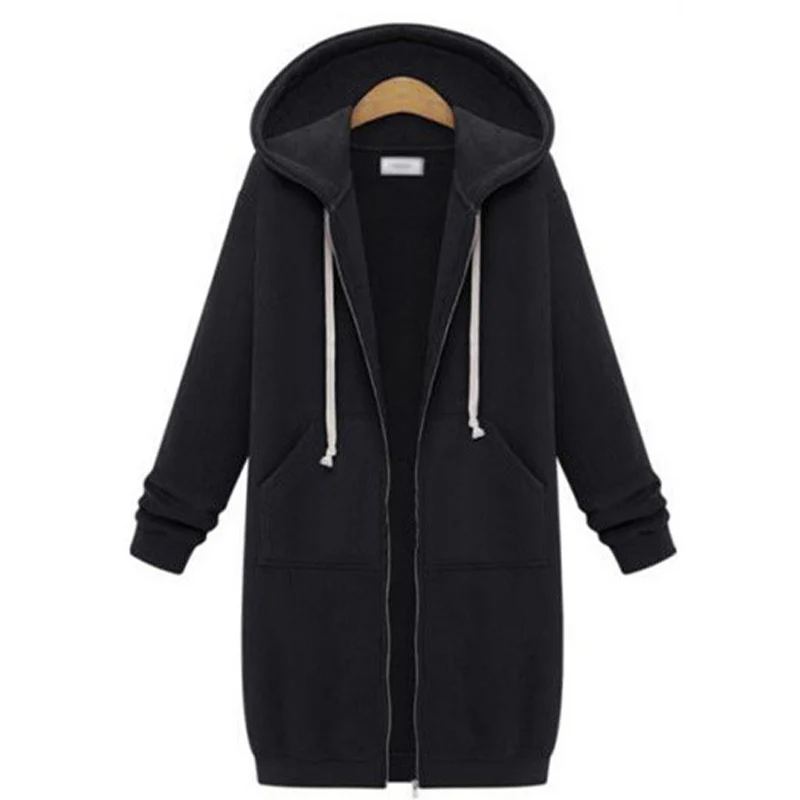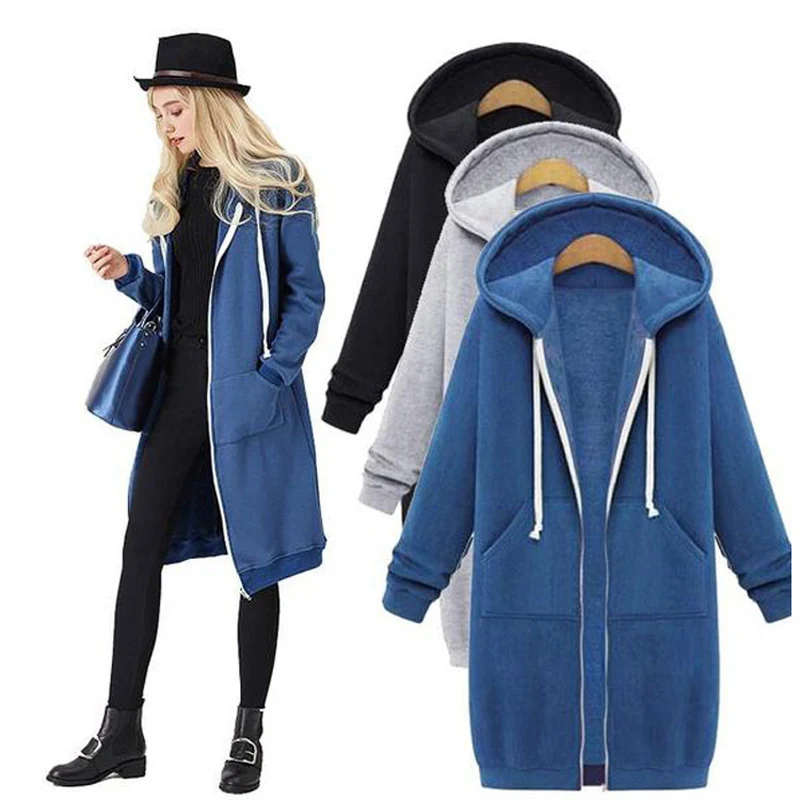 2020 Осень Зима теплые длинные толстовки женские модные флисовые пальто на молнии с капюшоном женские повседневные однотонные свободные кофты Верхняя одежда