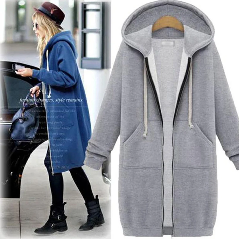 Осенне-зимняя толстовка, Женская Длинная толстовка, женская теплая ...