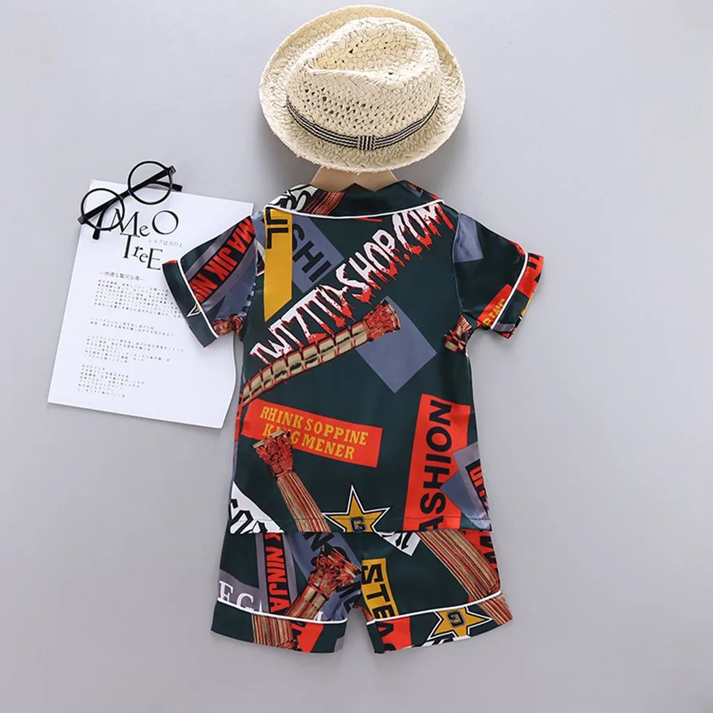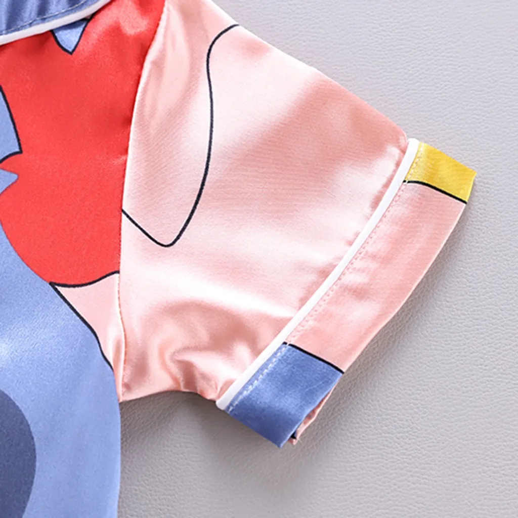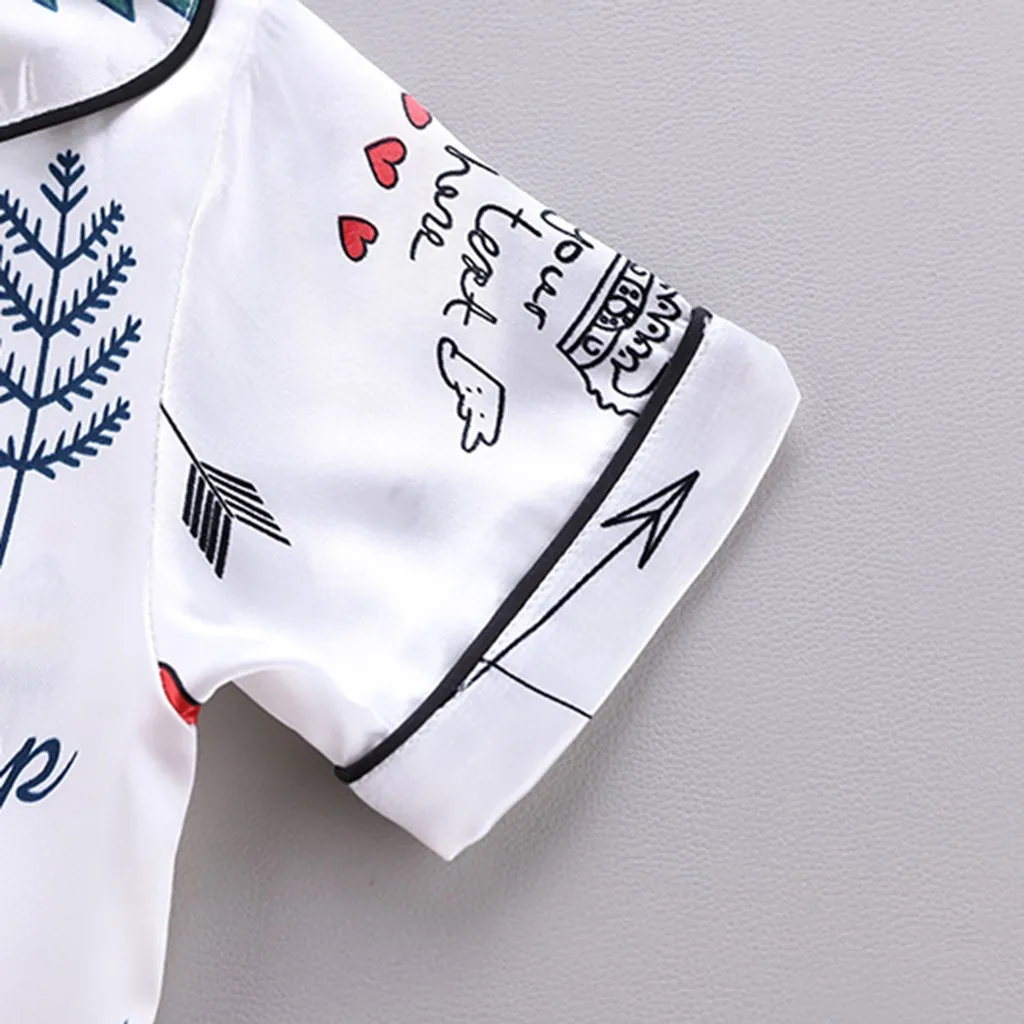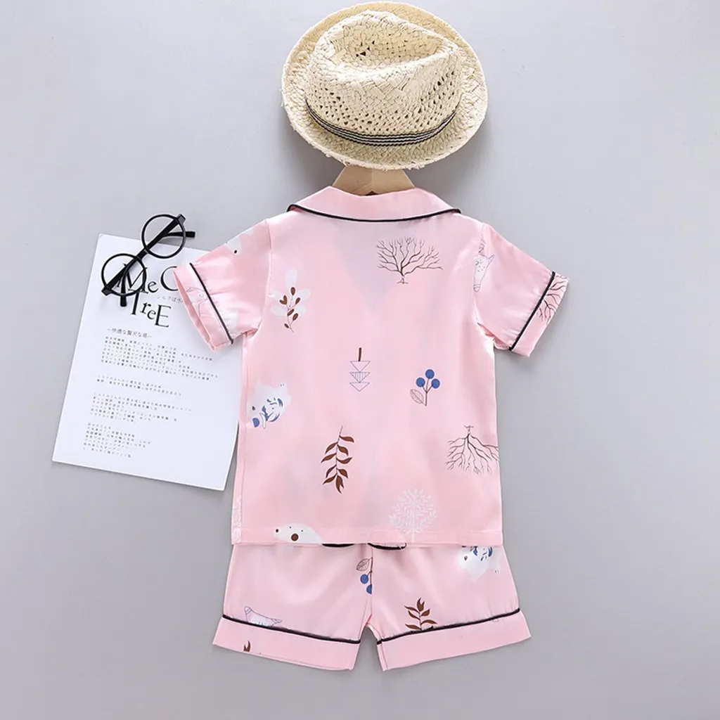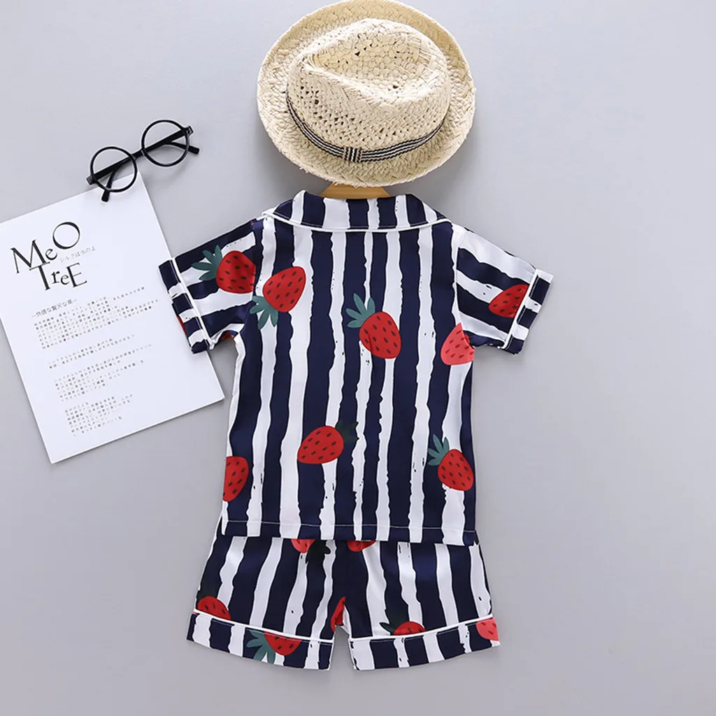 Детская блузка с коротким рукавом + шорты, одежда для сна, пижама, детская одежда, комплекты детской пижамы в полоску, комплект одежды с мультяшным принтом для мальчиков и девочек