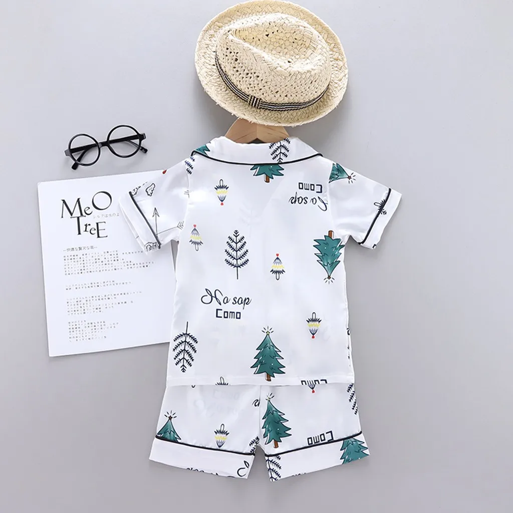 Детский пижамный комплект, шелковая атласная пижама для мальчиков и...