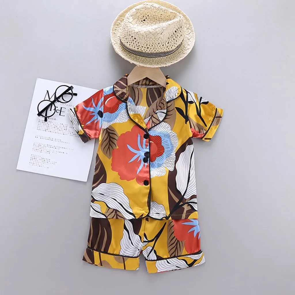 Детский пижамный комплект для мальчиков и девочек, с цветочным принтом