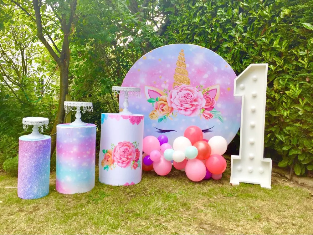 Круглый Кулон покрытый фон baby shower стол вечерние Декор Onederfu...