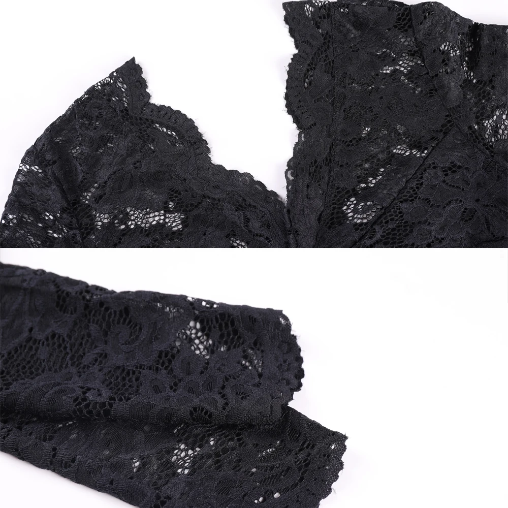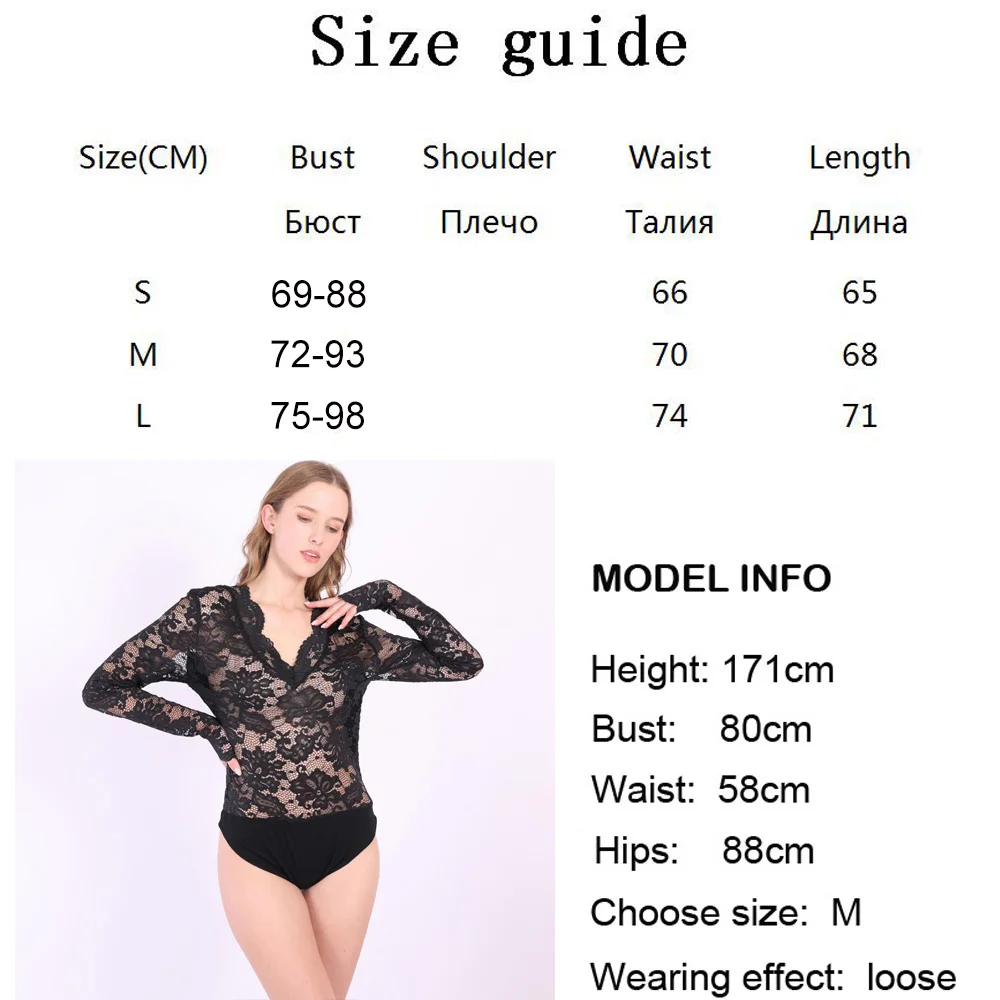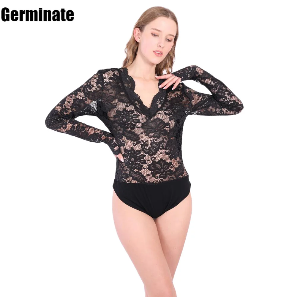 Женское кружевное боди с V-образным вырезом и длинным рукавом