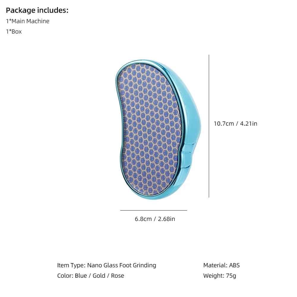 Тип изделия: Нано Стекло Для Шлифования ногЦвет: синий/золотой/розовыйМатериал: АБС-пластикВес: 75 гРазмеры: 6,8*10,7 см/2,68 * 4.21in