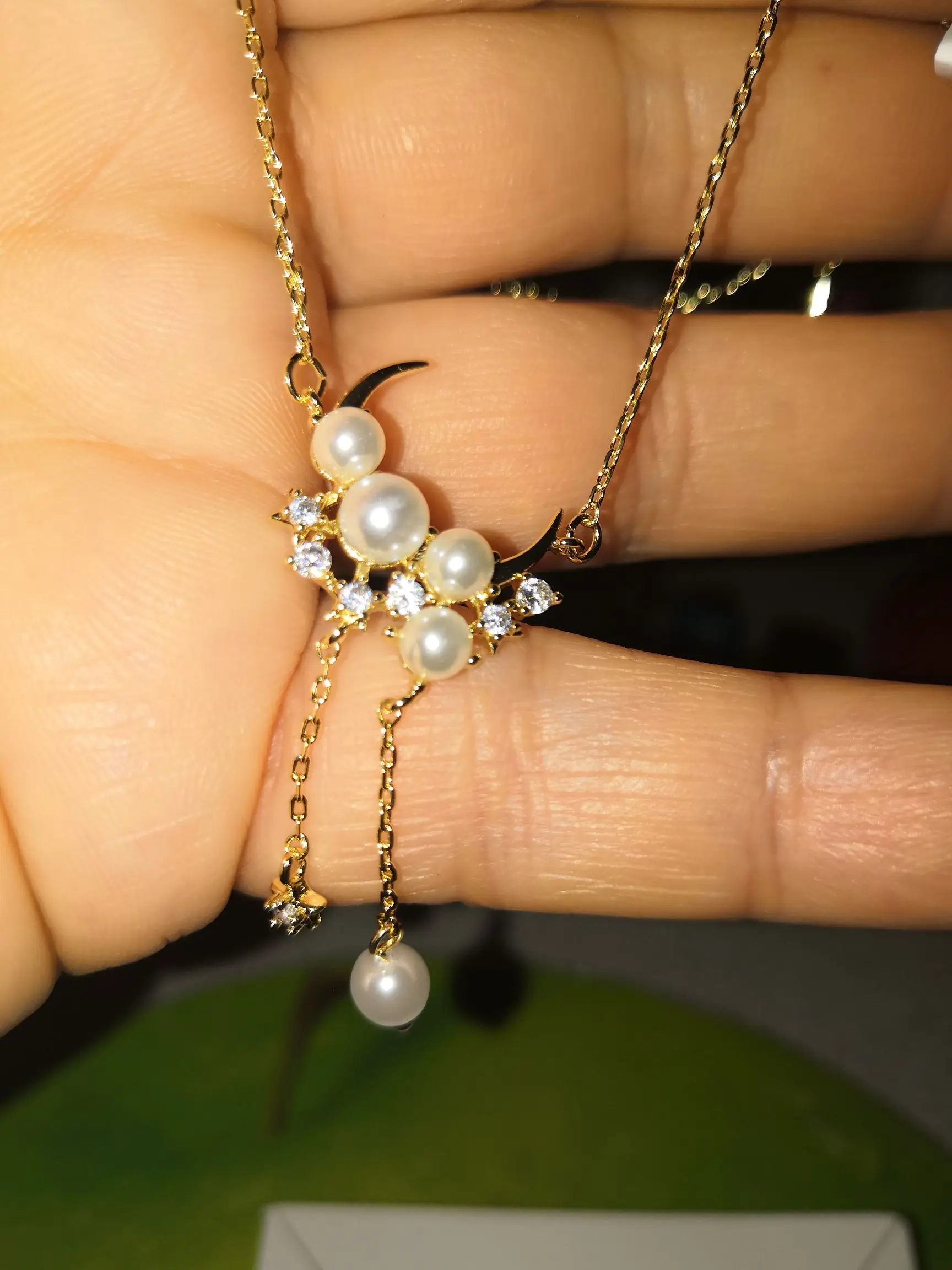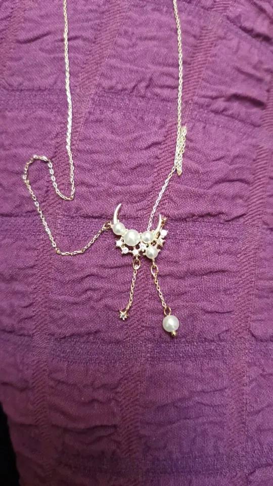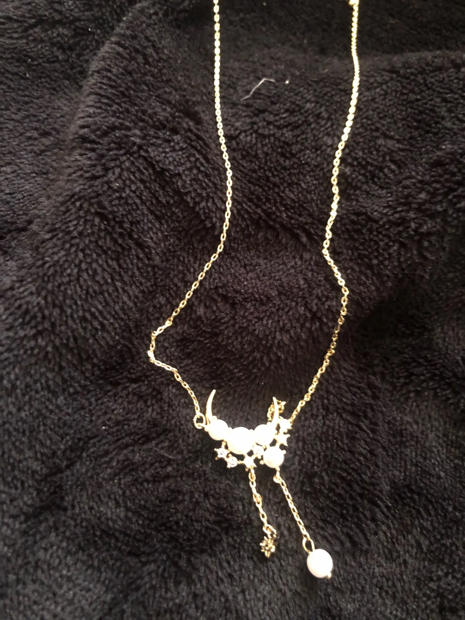 Украшение весьма красивое. В реалии цвет металла более яркий жёлтый. Не понимаю, почему написано в описании, что это золото. Не нравится цепочка. Она постоянно норовит свернуться в узел или же изогнуться. Это неприятно. Нижние цепочки, которые свисают с месяца, тоже почти не расправляются. Висят, как корявые палки. Сама подвеска очень симпатичная, но всё портит вечно кривящаяся и изворачивающаяся цепочка. В итоге её приходится постоянно поправлять.