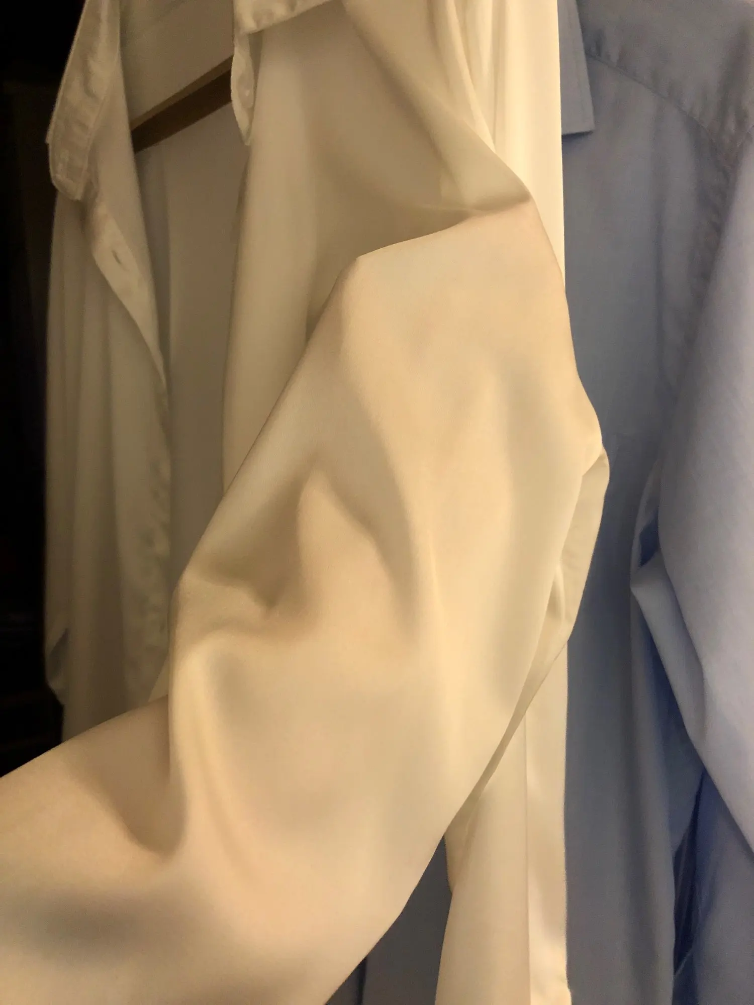 Отличная шелковая рубашка! За пару недель дошла до Львова. Брала на размер S при росте 168, размер L, отлично подошла. Рубашка длинная, можно носить и выпущенной и заправленной. Воротник плотненький. Также производитель аккуратно поместил инструкцию. Стирать при низкой температуры, не сушить в сушилке, гладить при деликатном режиме. Думаю, что обязательно в будущем закажу ещё в других цветах. Незаменимая базовая вещь. Нк дорогая, но хорошего качества!