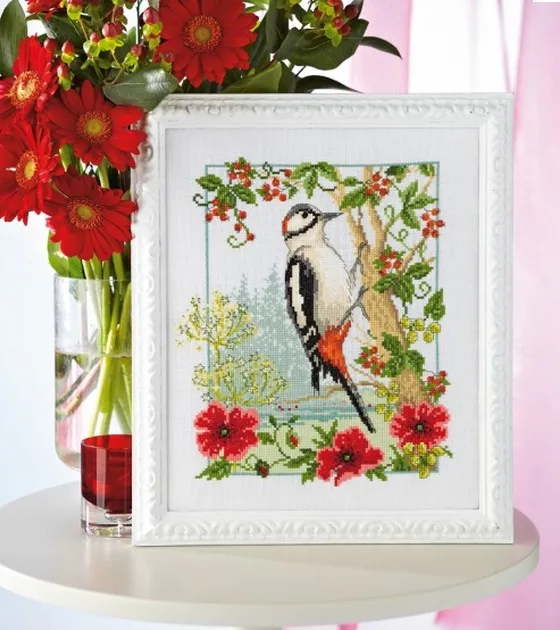 Набор для вышивки крестиком, комплект из 11141618222528ct, зимой, дятел, птица
