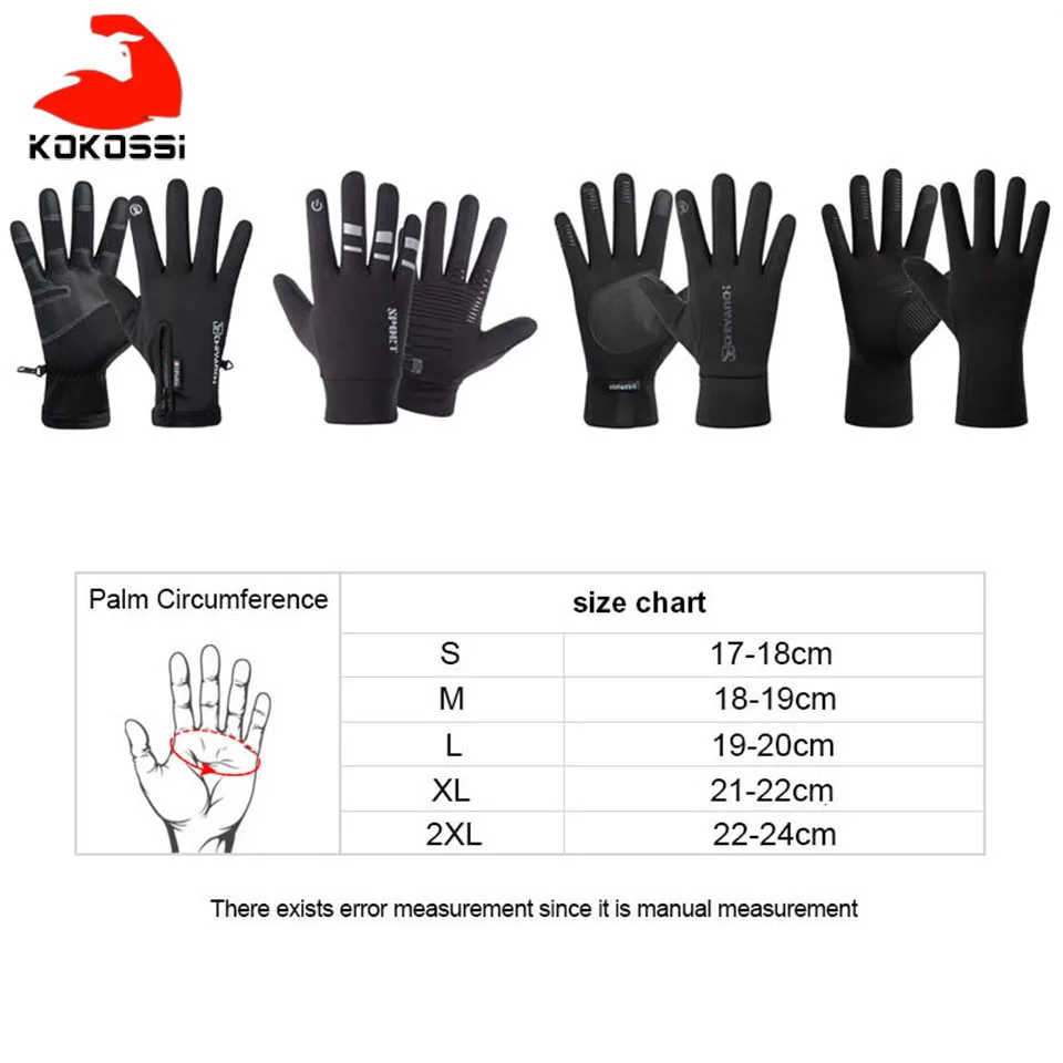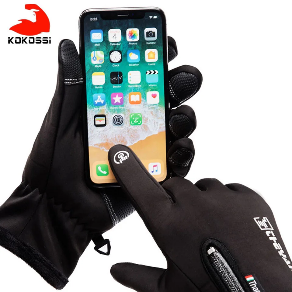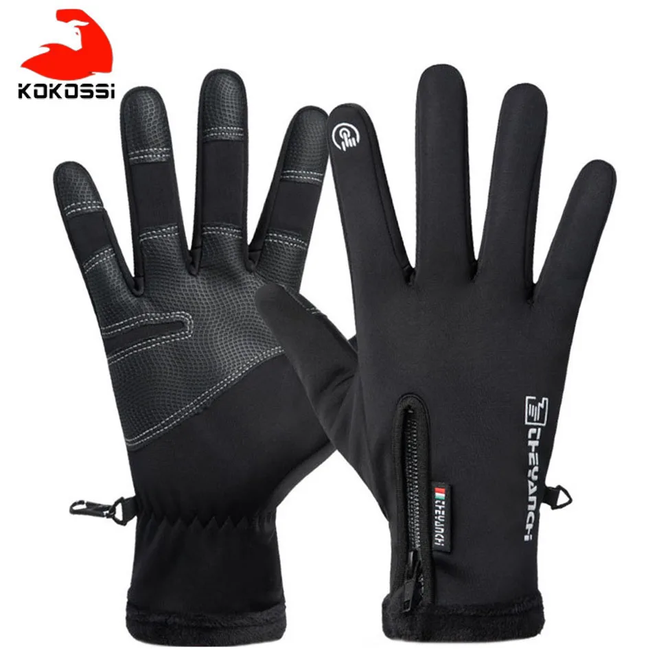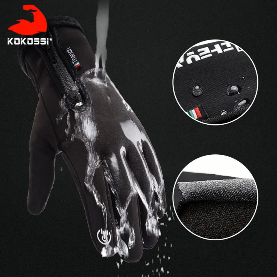 Зимние велосипедные перчатки KoKossi, теплые перчатки с пальцами для сенсорного экрана, водонепроницаемые, для улицы, велосипедный и Лыжный спорт, для езды на мотоцикле