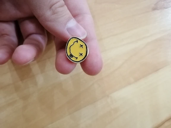 ⭐️пин приехал очень быстро, в течении двух недель, не смотря на 11.11 ⭐️упаковка хорошая, никаких повреждений нет⭐️думала будет немного больше, но так даже лучше, выглядит элегантнее⭐️крепление хорошее, ношу везде и всегда, не теряется⭐️удобненький, не колется, в отличие от меня). Фанатам нирваны особенно зайдет, товар качественный, особенно за такие деньги, спасибо продавцу. Вк: corona_ _time