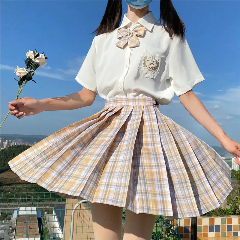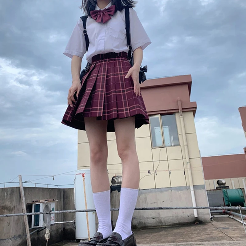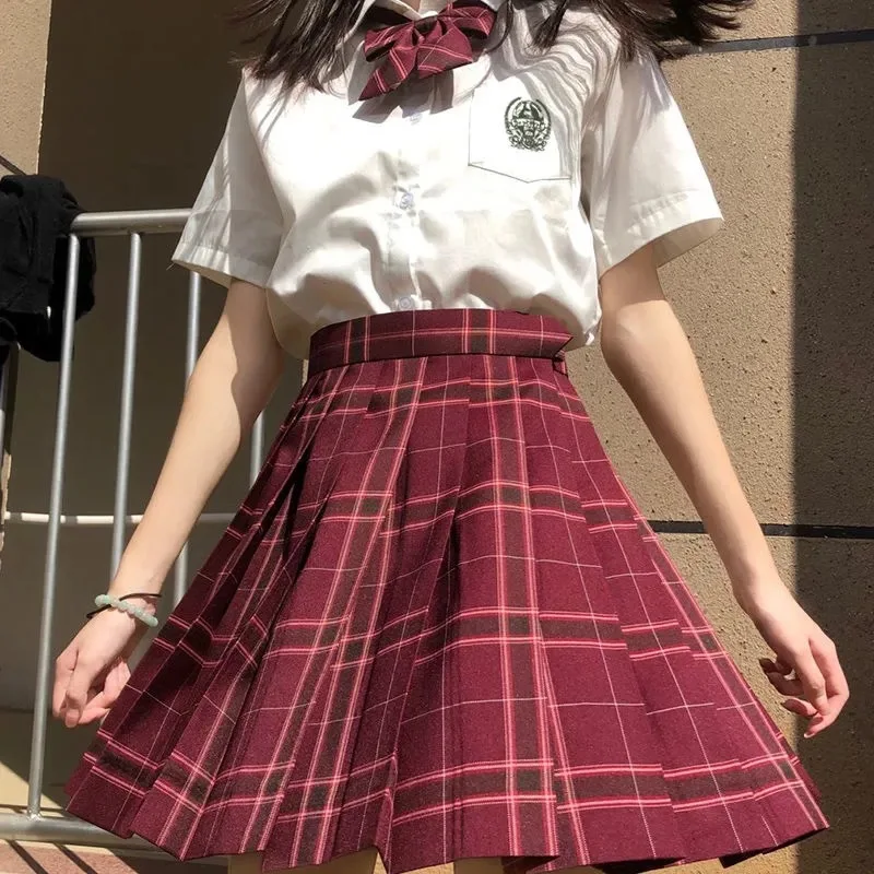 Японская школьная форма, Женская трапециевидная плиссированная юбка, милая клетчатая юбка в стиле Харадзюку, мини-юбка в стиле ольччан