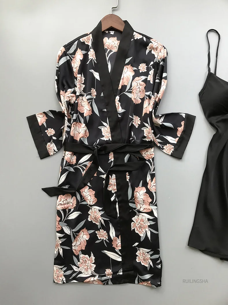 Женский Атласный халат, из искусственного шелка, с цветочным принто...