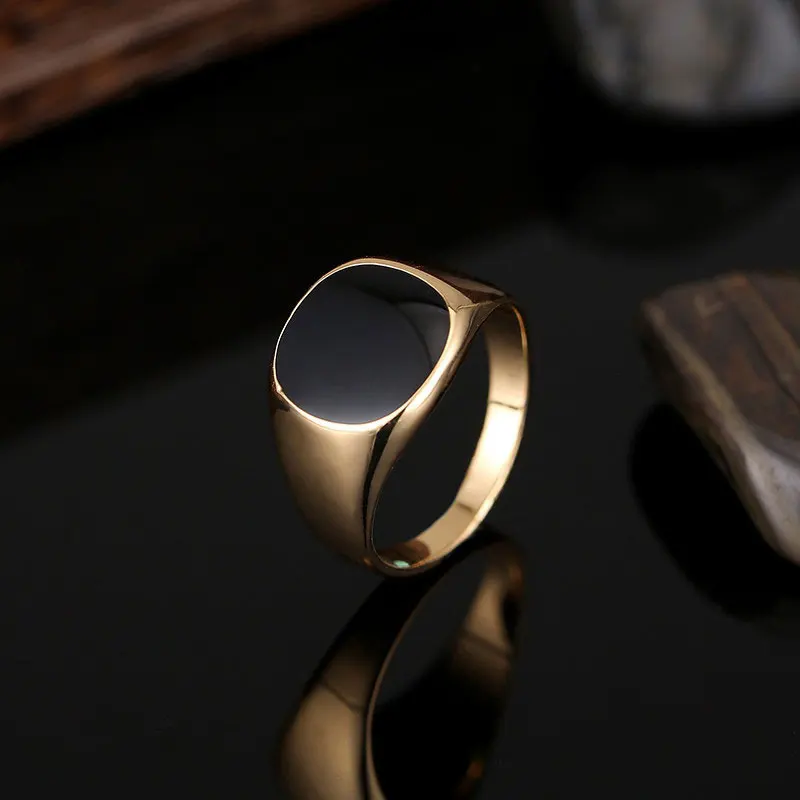 Кольцо с черным камнем, 18 карат, с печатью из 18-каратного золота