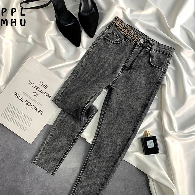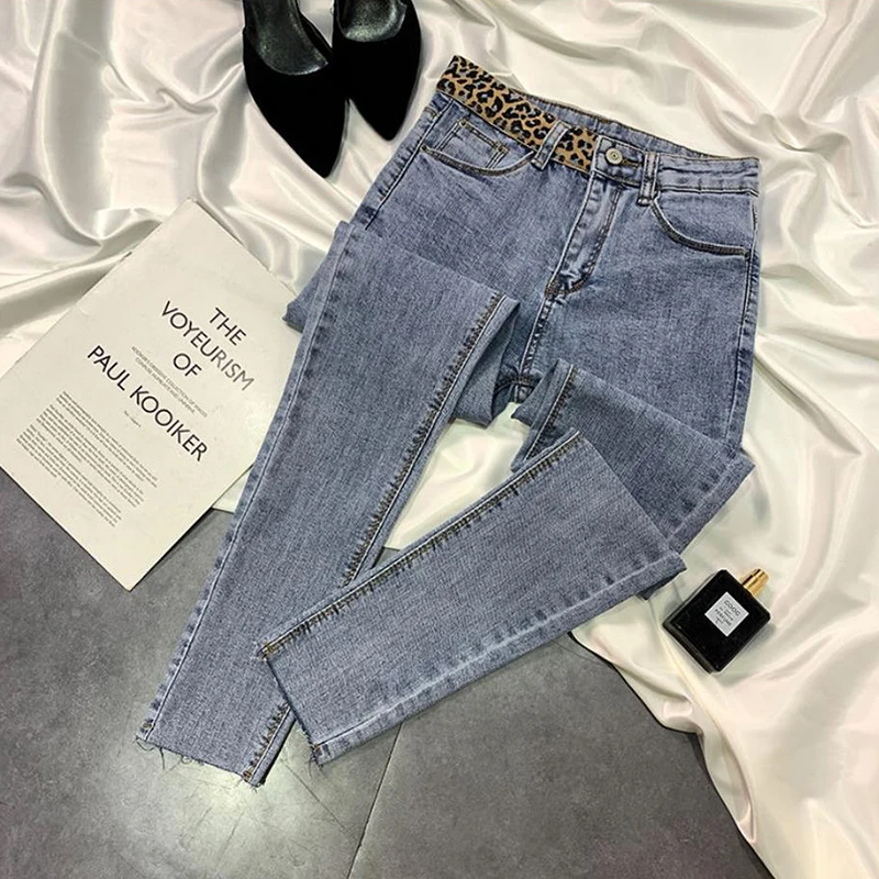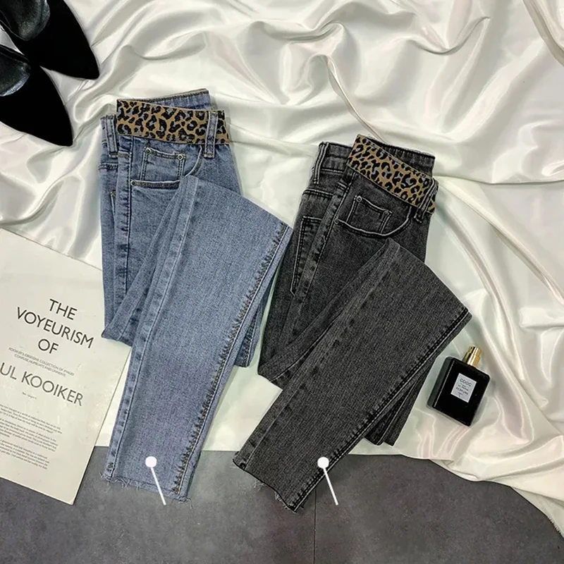 Облегающие эластичные брюки-карандаш с леопардовой аппликацией, Женская винтажная уличная одежда, джинсовые брюки до щиколотки, женские джинсы для женщин