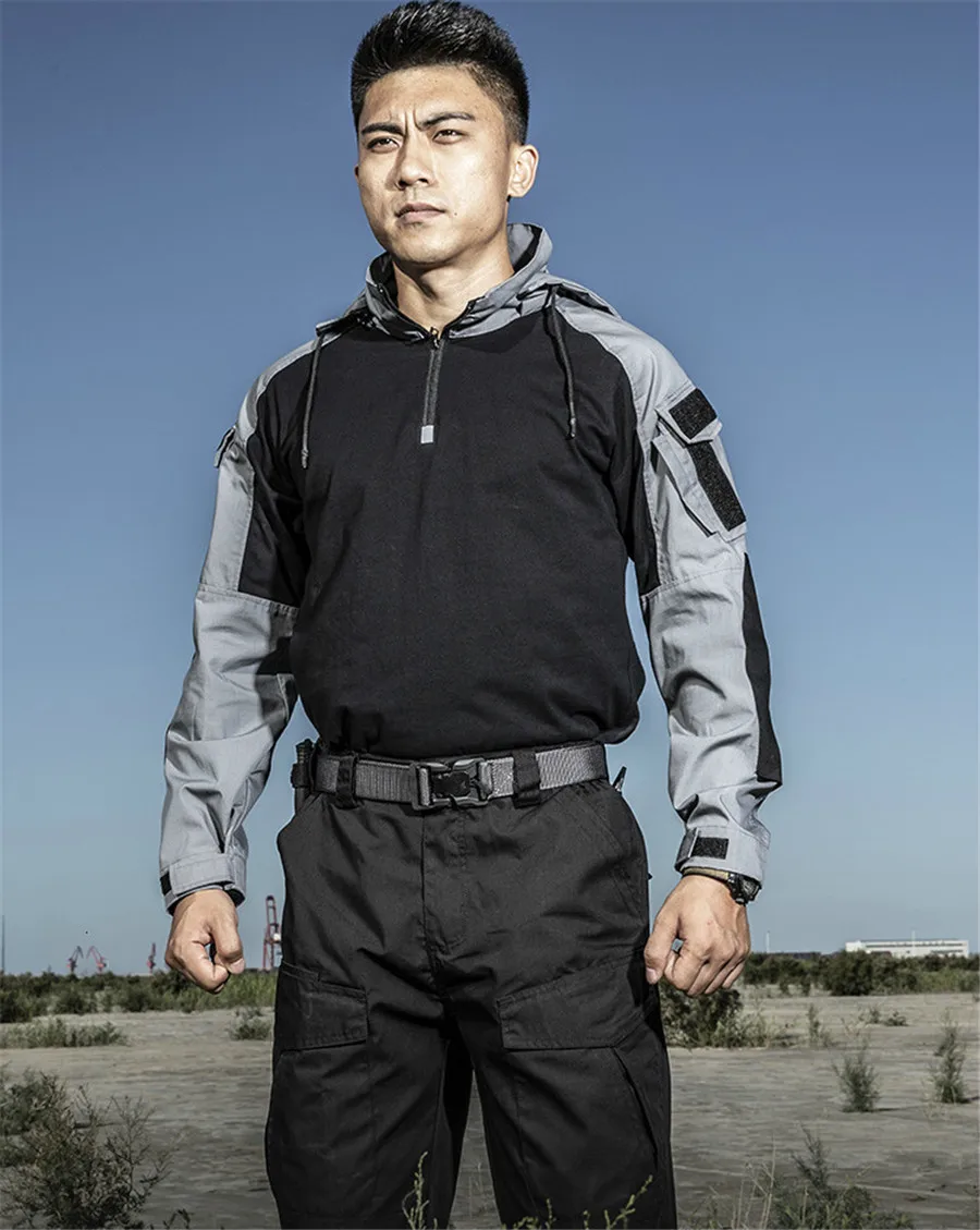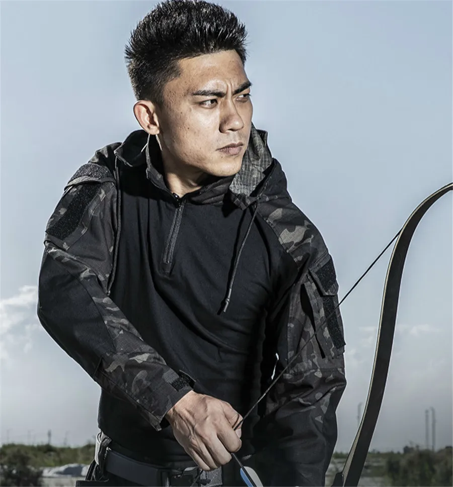 Тактическая камуфляжная Униформа с капюшоном, Военная рубашка, Военные Поклонники CS, полевые тренировочные боевые топы, мужские уличные спортивные походные рубашки