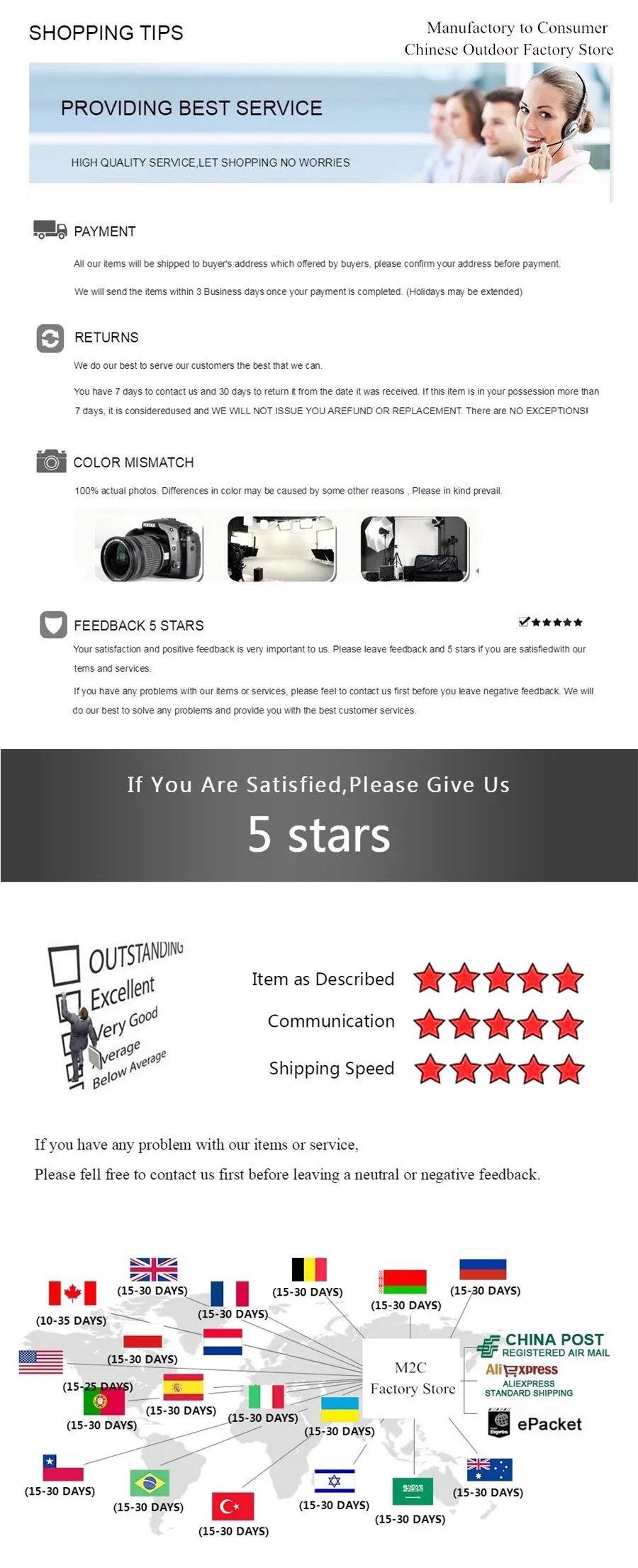 Manufactory to Consumer Chinese Outdoor Factory Store - Надежность 90%