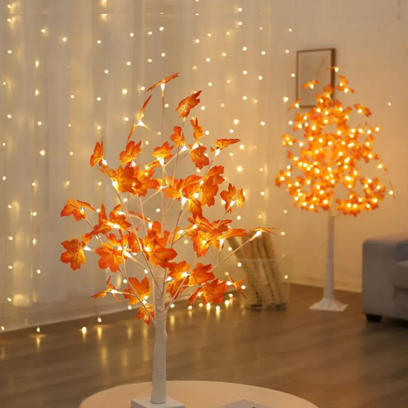 Настольная лампа с кленовымгинкгорождественским огнем, 24 светодиода светильник для дома, праздника, спальни, внутреннего декора, бара, сказосветильник