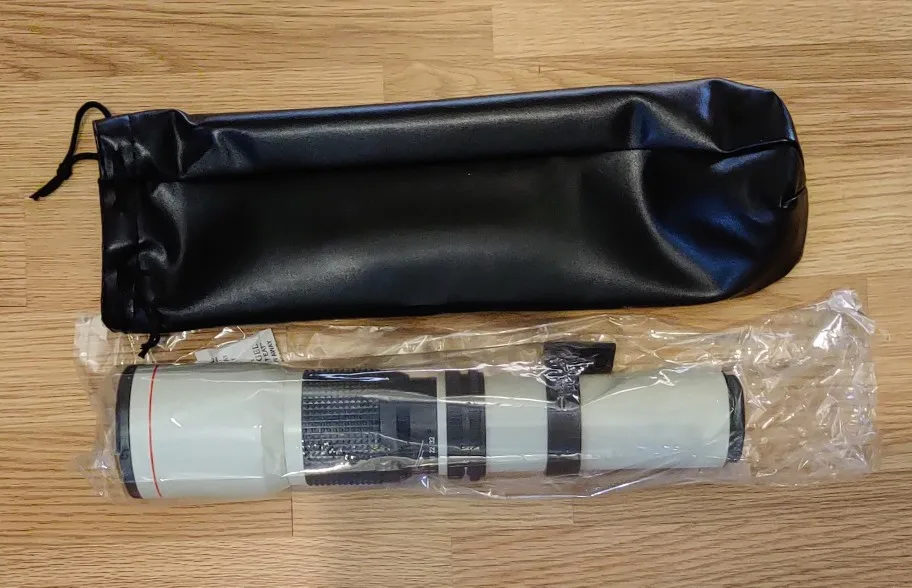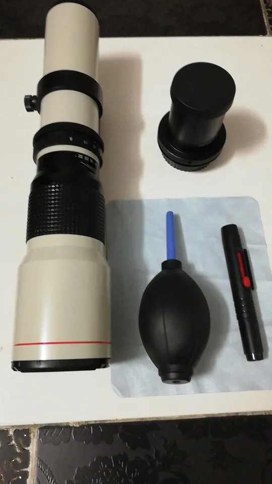 Объектив JINTU 500 мм/1000 мм f/8 ручной фокусировки-это классический объектив с Т-образным креплением, С диафрагмой диафрагмы в середине корпуса объектива, чтобы остановить диафрагму при необходимости. Однако предполагается, что большая часть съемки с таким объективом будет иметь максимальную диафрагму f/8,0, с штативом, моноподом или другой такой поддержкой. В комплекте 2x doubler преобразует этот объектив 500 мм в 1000 мм.В сочетании с Т-образным креплением, подходящим для вашей системы камеры, эта супер телефотография работает как на камерах «full frame», так и на цифровых зеркальных фотоаппаратах в стиле «APS-C». Вы можете использовать объектив в ручном режиме экспозиции «M» или «A» только в режиме приоритета диафрагмы. Этот изысканный Ахроматический рефрактор дает изображения с приятным пиковым контрастом и хорошо контролируемым вспышкой. Его можно использовать при максимальной диафрагме в очень яркий день для некоторых изображений движущихся предметов.ИК-пульт будет работать только в том случае, если камера поддерживает функцию ИК-пульта.Пульт дистанционного управления является беспроводным инфракрасным спуском затвора, способным мгновенно запускать затвор выбранных цифровых камер (Canon, Nikon, Sony, Olympus и Pentax), не беспокоя камеру, увеличенное расстояние до 48 дюймов (зависит от бренда камеры) перед камерой.-Ахроматический рефрактор 500 мм f/8 Объектив в Т-креплении-Оптика с многослойным покрытием-Изогнутое Кольцо фокусировки на передней части объектива-Фиксированный воротник штатива-Предназначен для использования с моноподами, поддержкой груди или штативами