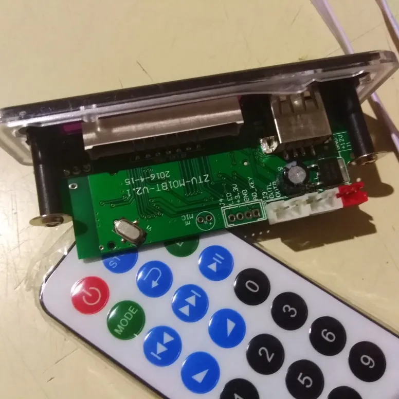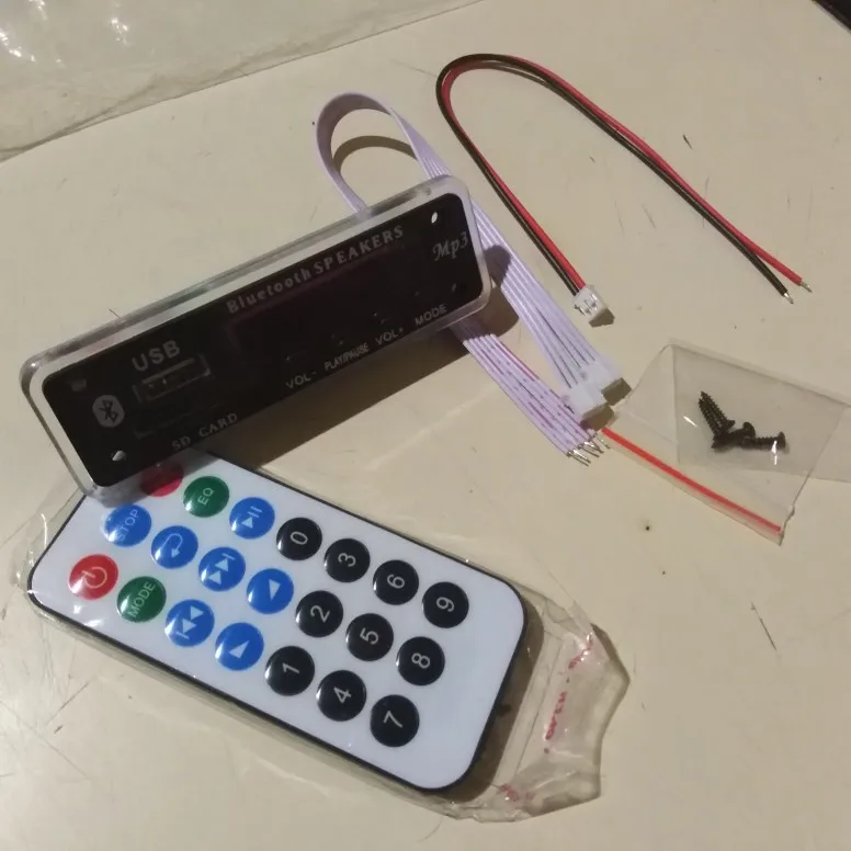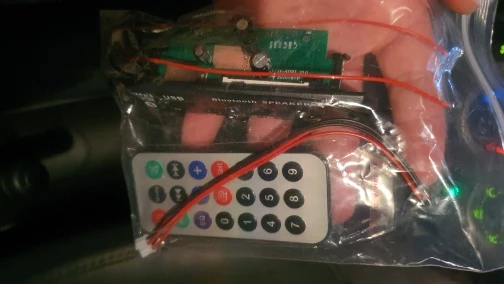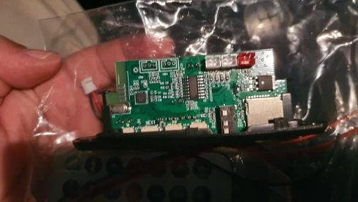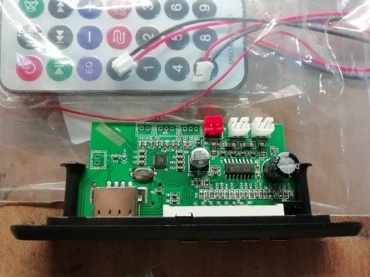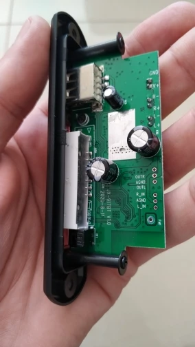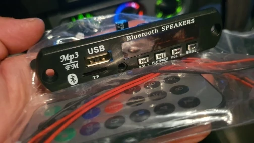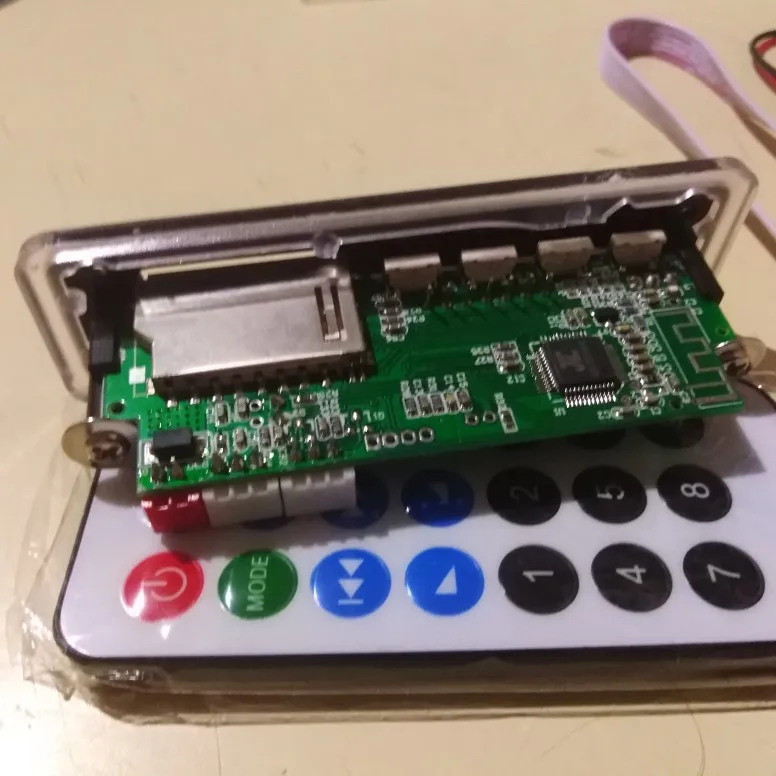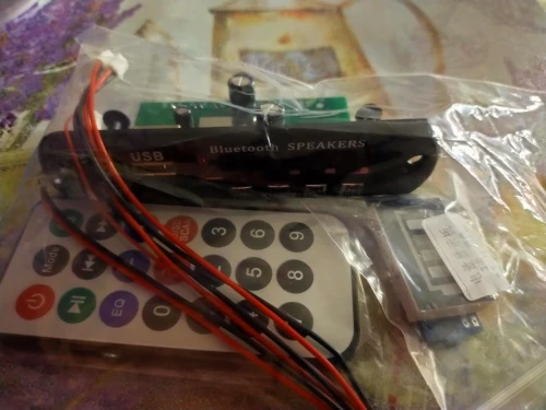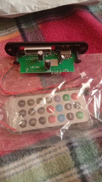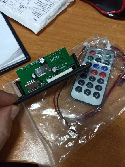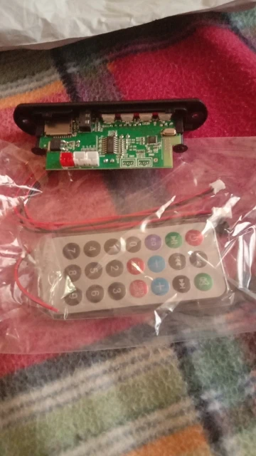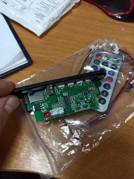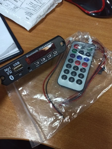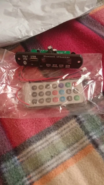 Пришло очень быстро. Классная вещь. Все работает, долбит будь здоров, разные предустановки эквалайзера, радио чувствительное с автотюнингом, пульт, блютус, AUX-вход, все дела. Выглядит красиво, эффект работы отображается на дисплее в виде мерцающих в ритм динамиков. Короче годнота с большой буквы. Я ее вмонтировал в корпус от бывшего CD-рома, запитал от БП ПК, вывел провод на динамики или в другие устройства и получилась классная технологичная приспособа. Из минусов только глубоко утопелнный приемник ИК-сигнала и из-за этого очень узкий угол работы пульта, думаю вклеить туда микро зеркало и будет ловить с самых острых углов. Но лучше бы ее прямо науружу вывели в виде круглой пипки. Ну и еще небольшой минус - нет кнопки автопоиска станций радио на самом девайсе, как это есть на других моделях того же продавца. Так что если пульту хана, то радио считай кончилось.