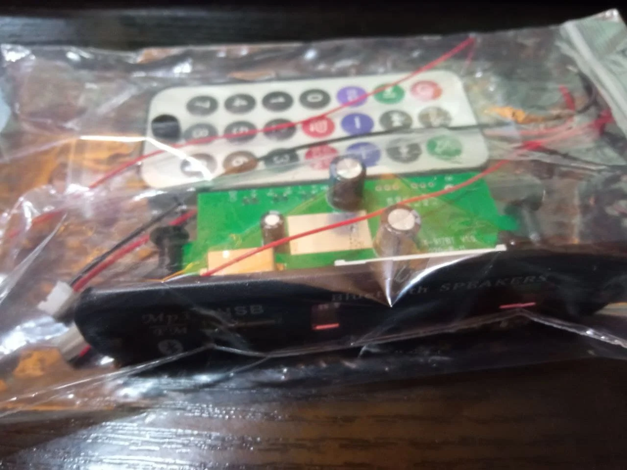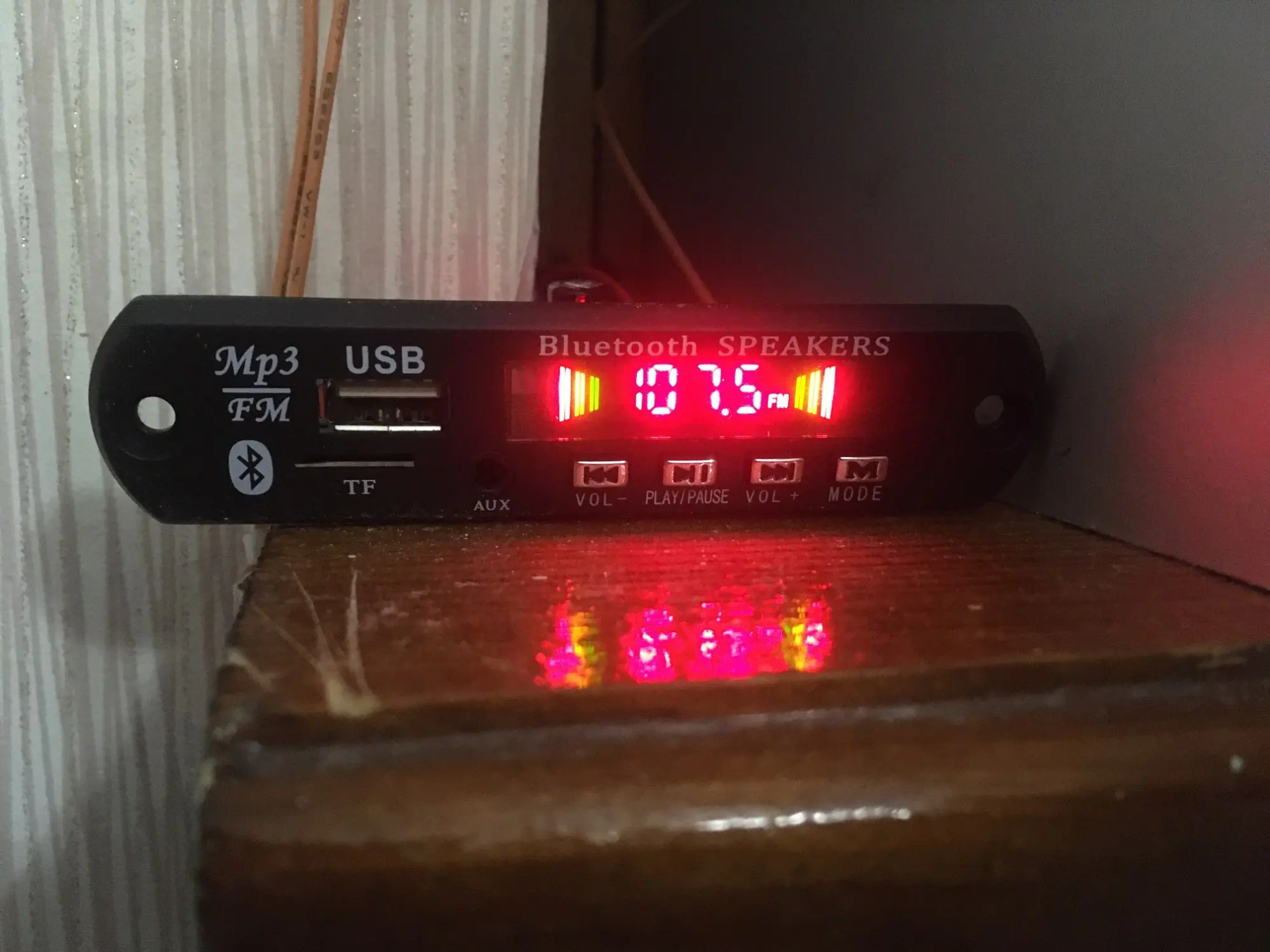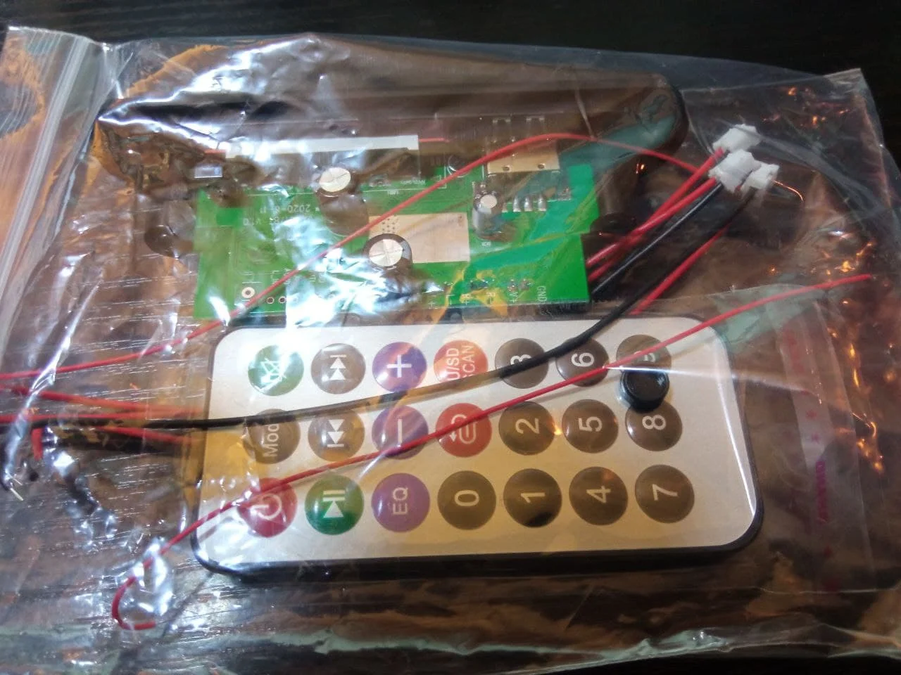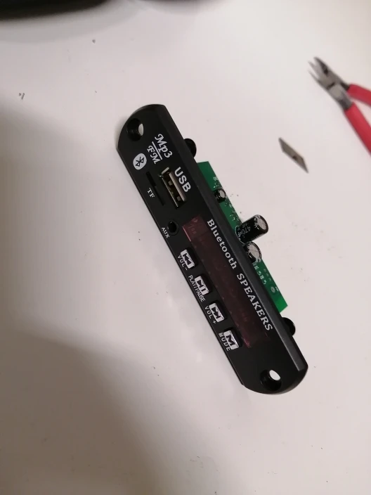 Пришло очень быстро. Классная вещь. Все работает, долбит будь здоров, разные предустановки эквалайзера, радио чувствительное с автотюнингом, пульт, блютус, AUX-вход, все дела. Выглядит красиво, эффект работы отображается на дисплее в виде мерцающих в ритм динамиков. Короче годнота с большой буквы. Я ее вмонтировал в корпус от бывшего CD-рома, запитал от БП ПК, вывел провод на динамики или в другие устройства и получилась классная технологичная приспособа. Из минусов только глубоко утопелнный приемник ИК-сигнала и из-за этого очень узкий угол работы пульта, думаю вклеить туда микро зеркало и будет ловить с самых острых углов. Но лучше бы ее прямо науружу вывели в виде круглой пипки. Ну и еще небольшой минус - нет кнопки автопоиска станций радио на самом девайсе, как это есть на других моделях того же продавца. Так что если пульту хана, то радио считай кончилось.