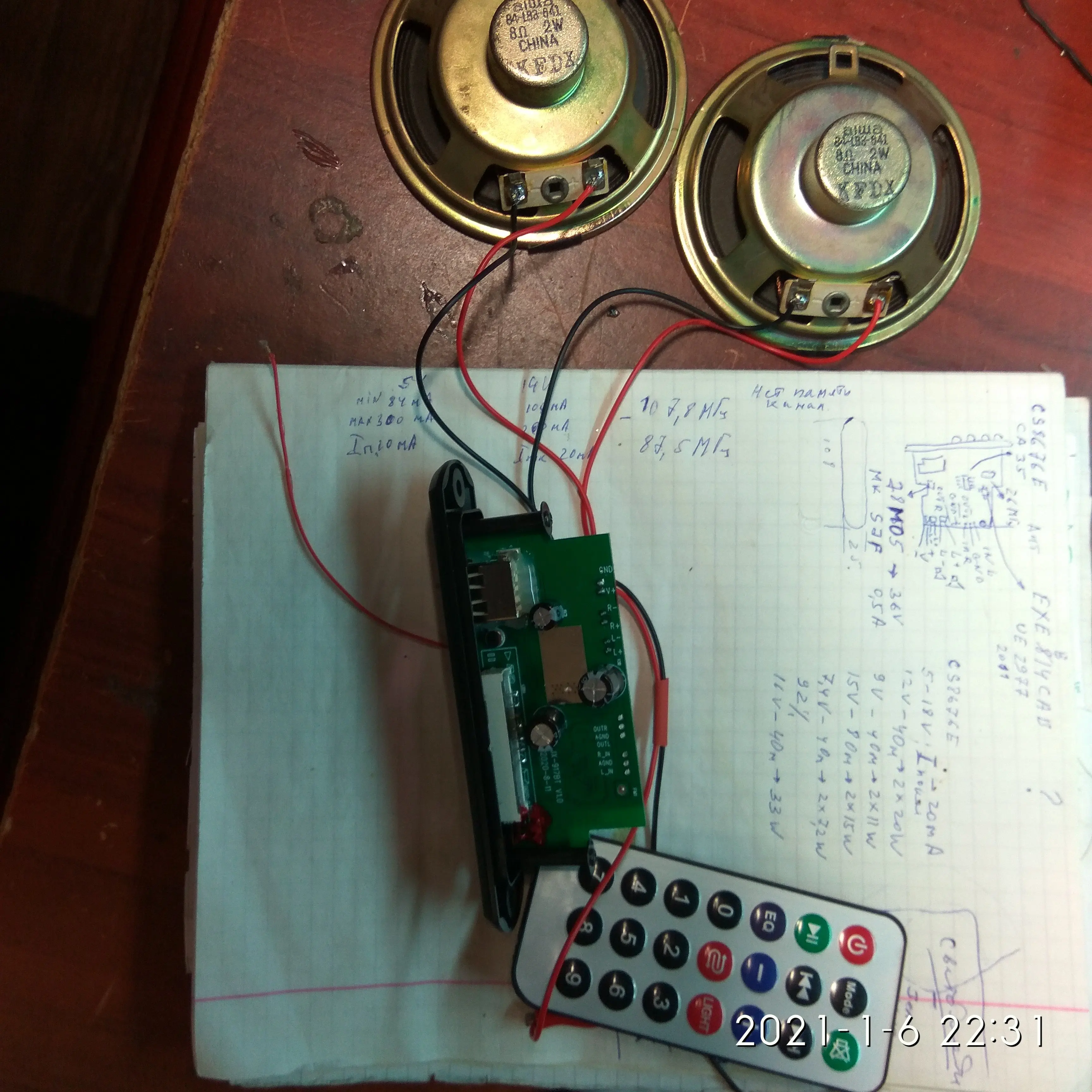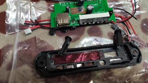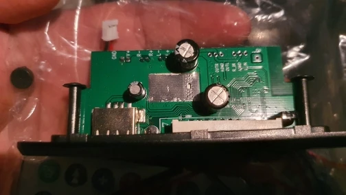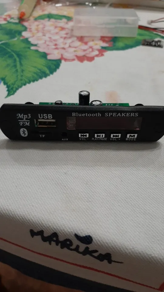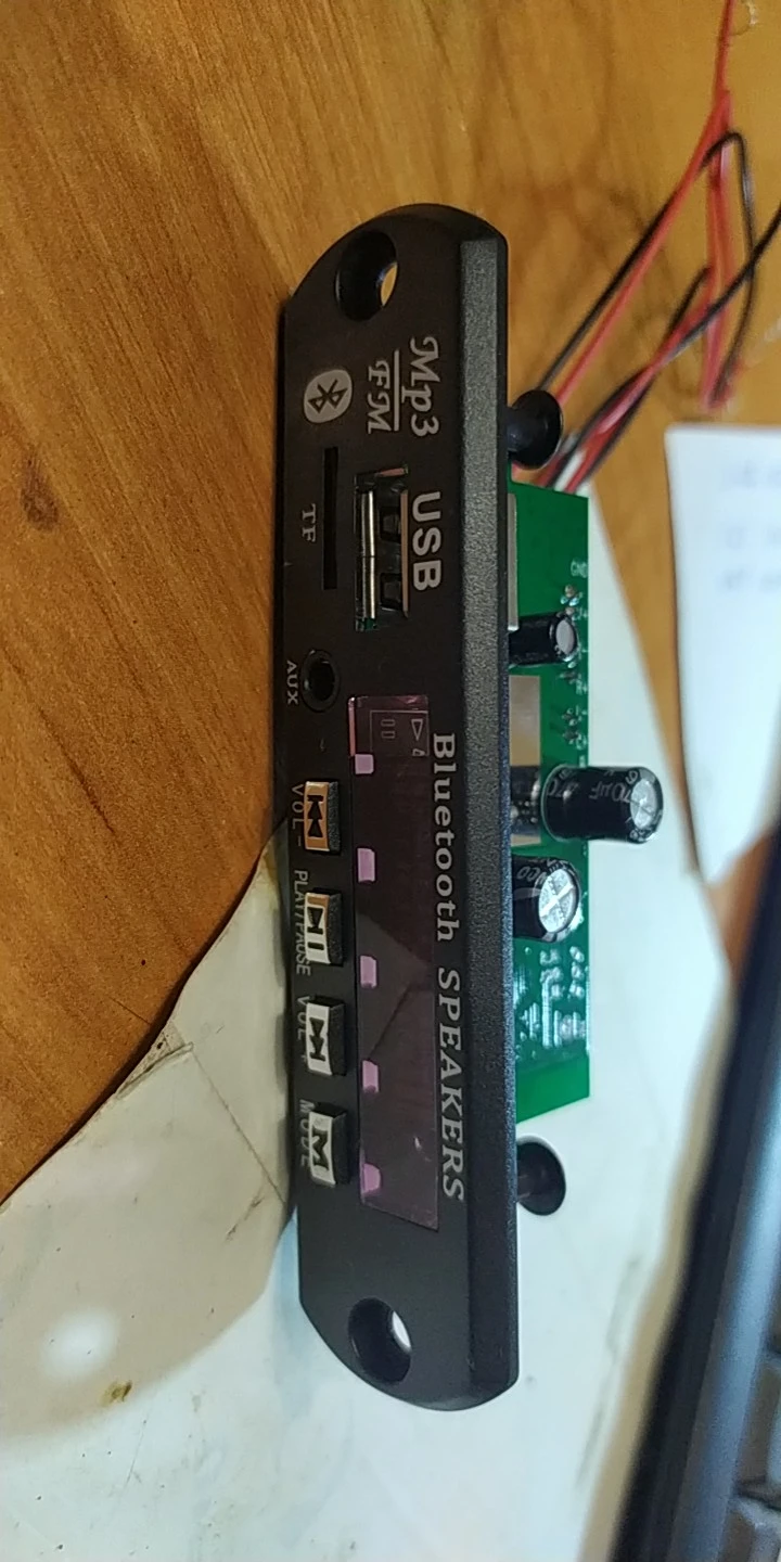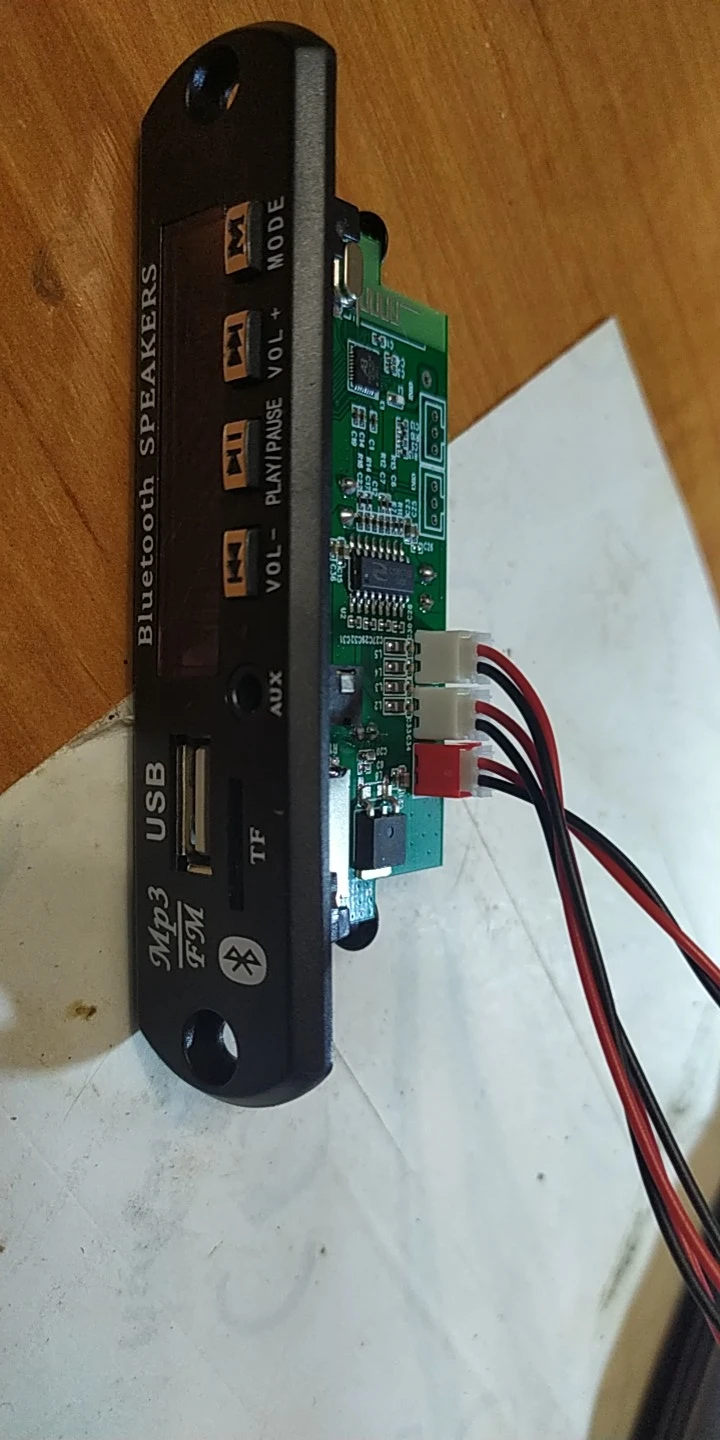 MP3 плеер 364,43 руб. Заказывал 11 октября 20 г. Пришел на почту 4 Января 21 г. Почти 3 месяца до МСК !!! Работает, упаковка плохая-хорошо что не сломалось. При первом нажатие на перемотку отвалилась кнопка, пришлось все кнопки пропасть, затем проклеить термо пистолетом, заодно USB и AUX. Перепаял датчик ИК ближе к краю платы. Динамики были на 8 Ом, плеер срабатывает от 4,8 В. при Токе 80 мА., но не уверенно. От 5-14 В. Ток потребления от 85 мА до 0,6 А. в зависимости от громкости. Ток покоя 10-30 мА, если будет питаться от аккумов в ждущем режиме- быстро сядет Для дома, гаража, машины пойдет. Японскую аппаратуру 80-90 х годов портить не буду, воткну или в ПК колонки или отдельно в коробку.