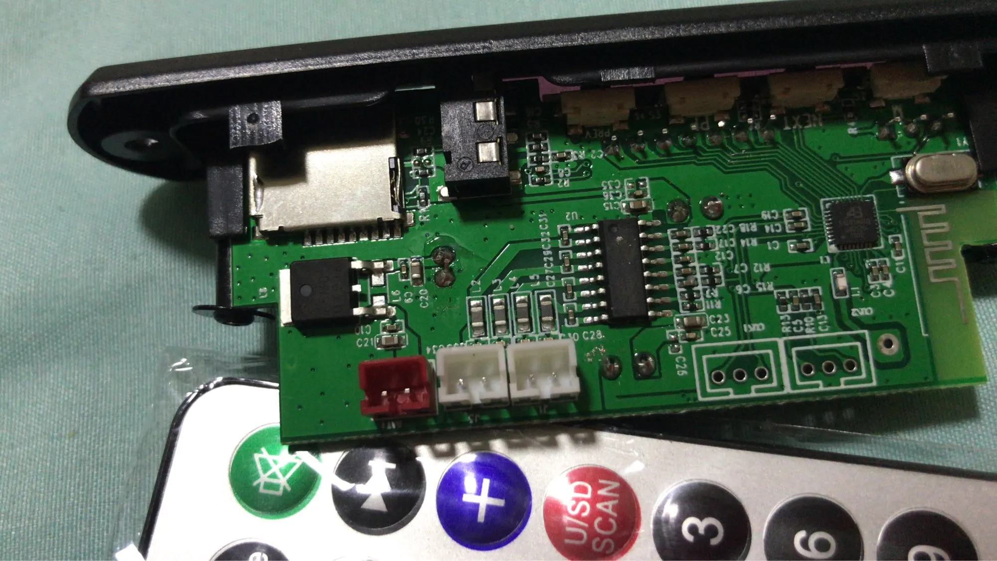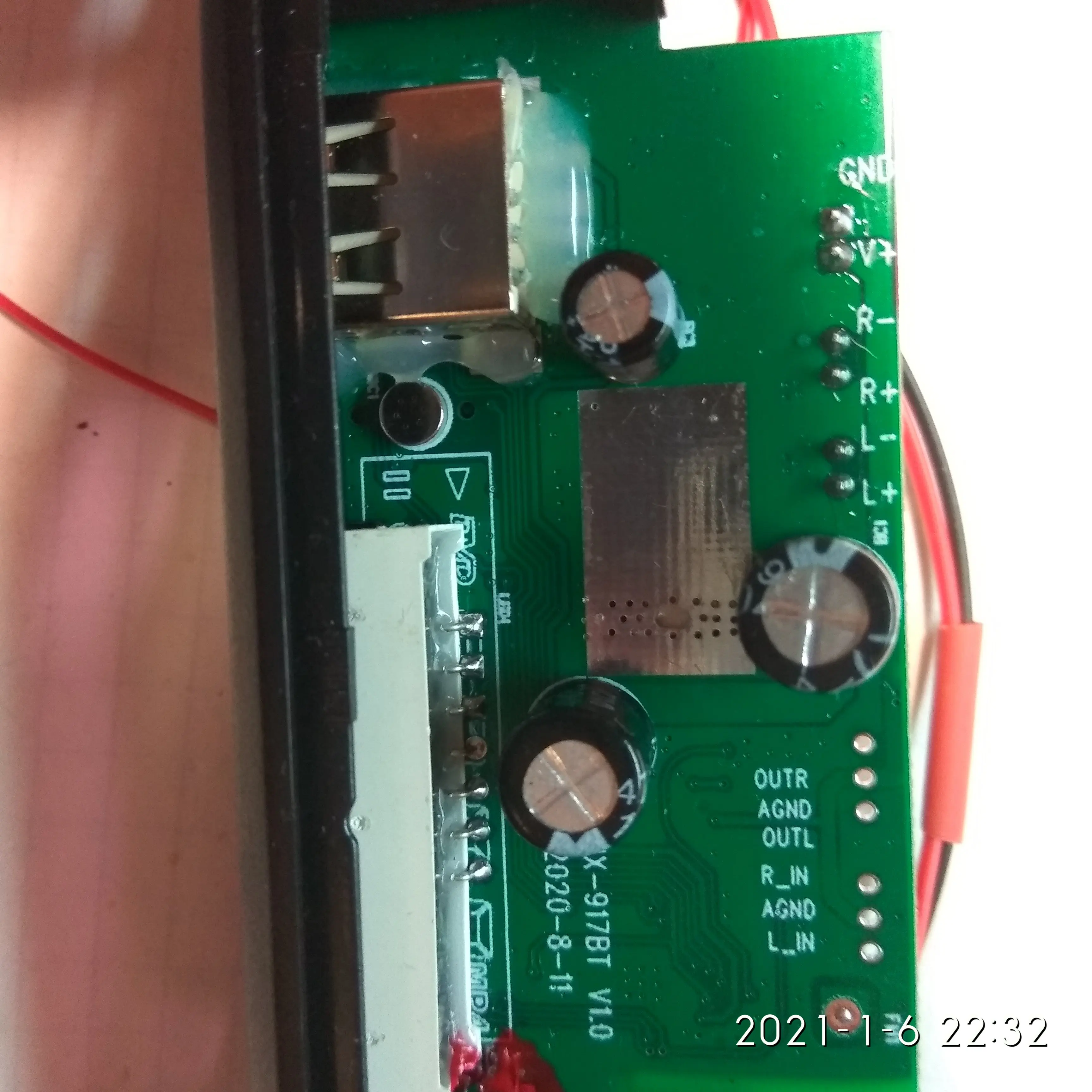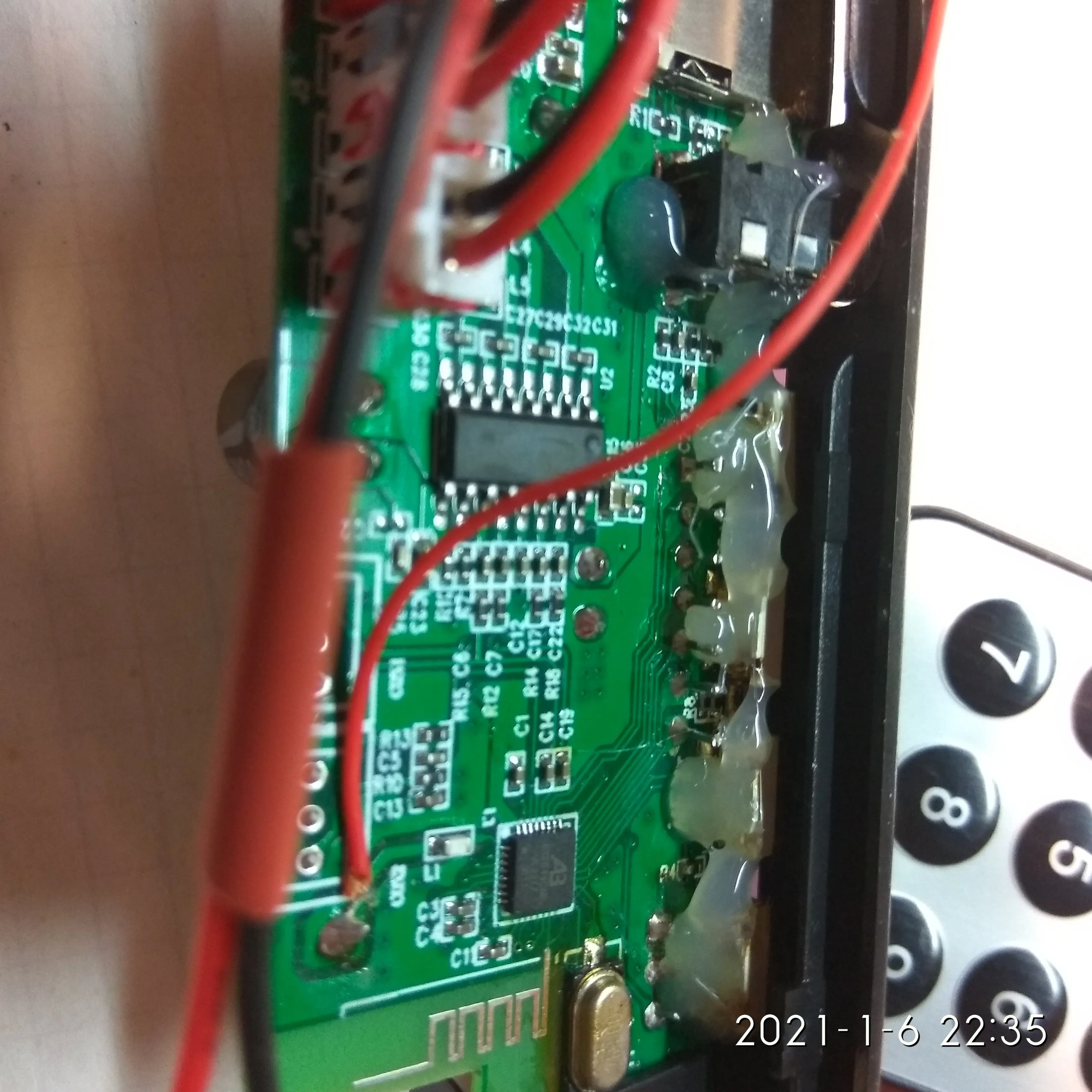 MP3 плеер 364,43 руб. Заказывал 11 октября 20 г. Пришел на почту 4 Января 21 г. Почти 3 месяца до МСК !!! Работает, упаковка плохая-хорошо что не сломалось. При первом нажатие на перемотку отвалилась кнопка, пришлось все кнопки пропасть, затем проклеить термо пистолетом, заодно USB и AUX. Перепаял датчик ИК ближе к краю платы. Динамики были на 8 Ом, плеер срабатывает от 4,8 В. при Токе 80 мА., но не уверенно. От 5-14 В. Ток потребления от 85 мА до 0,6 А. в зависимости от громкости. Ток покоя 10-30 мА, если будет питаться от аккумов в ждущем режиме- быстро сядет Для дома, гаража, машины пойдет. Японскую аппаратуру 80-90 х годов портить не буду, воткну или в ПК колонки или отдельно в коробку.