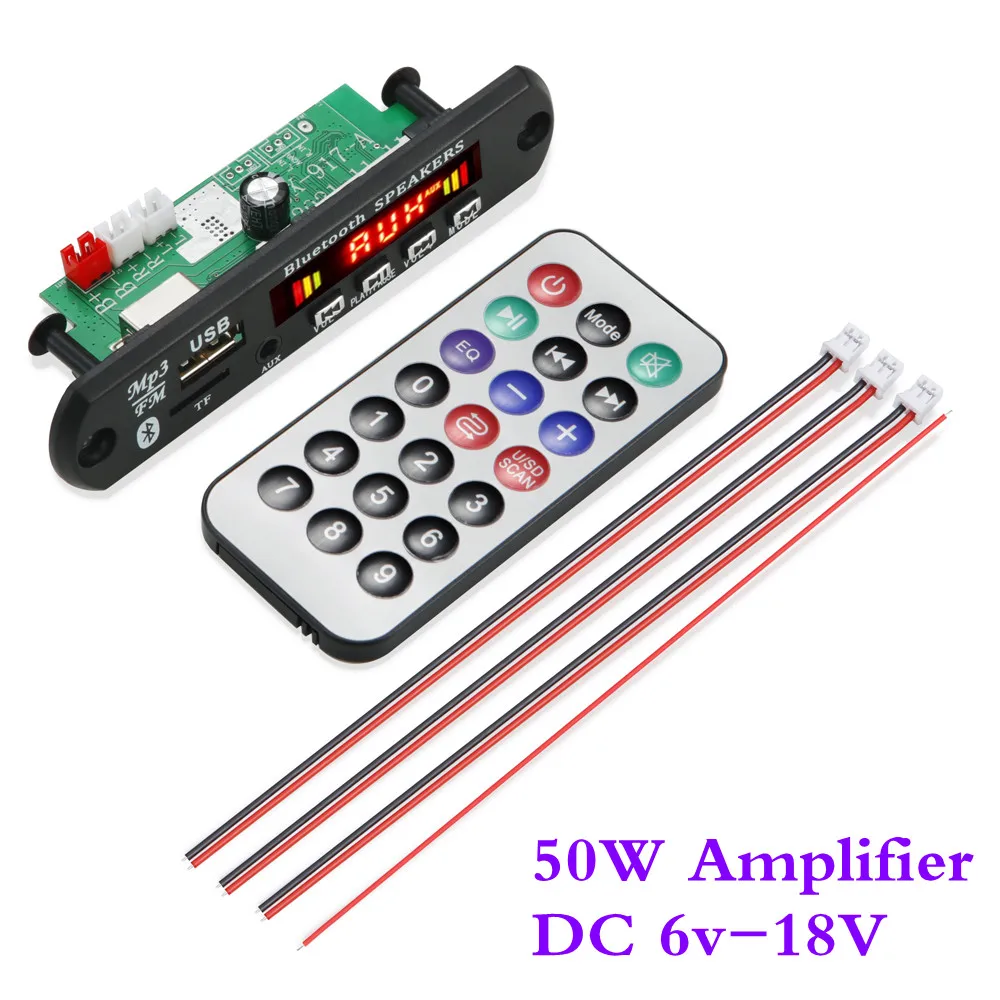 Усилитель ARuiMei 2*25 Вт, mp3-плеер, декодер, плата 12 В, Bluetooth 5,0, 50 Вт, автомобильный FM-радиомодуль, поддержка TF, USB, AUX