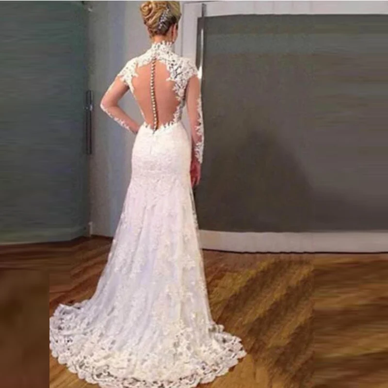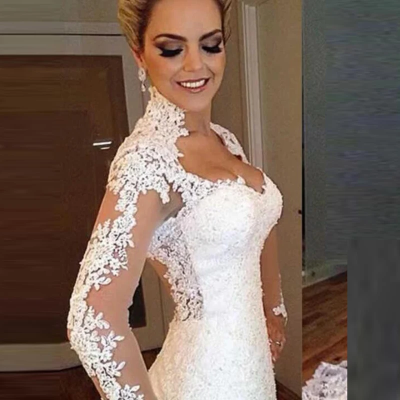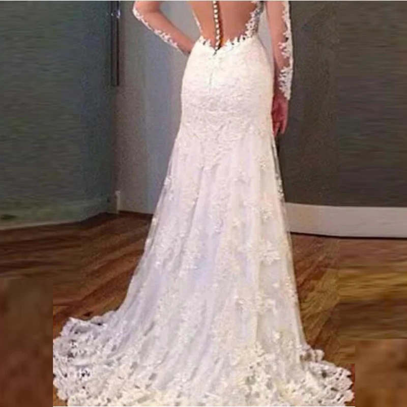 Свадебные платья невесты, с V-образным вырезом и длинными рукавами, с аппликацией, элегантное кружево цвета слоновой кости