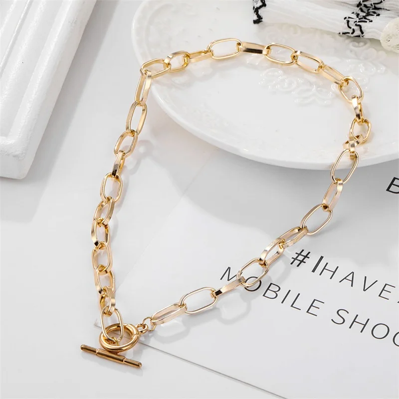 Ожерелье с застежкой под золото женское, массивное Ювелирное Украшение в стиле панк, Смешанные Круглые женское колье, чокер
