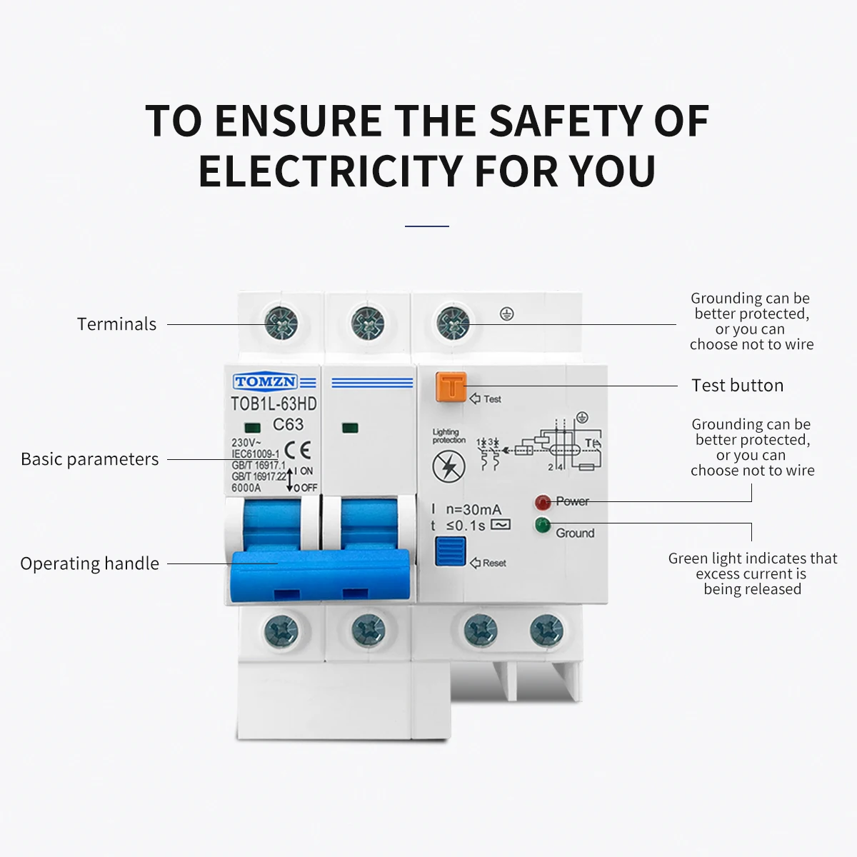 Главный выключатель, автоматический выключатель остаточного тока с защитой от перенапряжения RCBO MCB с защитой от молнии SPD