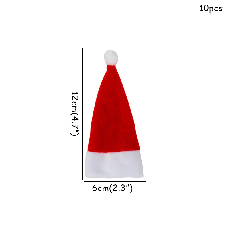 Материал: тканьРазмер: 12x6 смЦвет/Дизайн: Рождественская шляпаУпаковка: 10 шт. рождественские мини колпачки держатель для столовых приборов карман