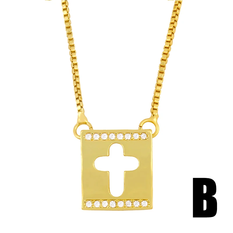 FLOLA маленькое ожерелье с золотым крестом для женщин кубический цирконий хрустальное сердце кулон ожерелье эффектные полированные Ювелирные изделия Подарки nker71
