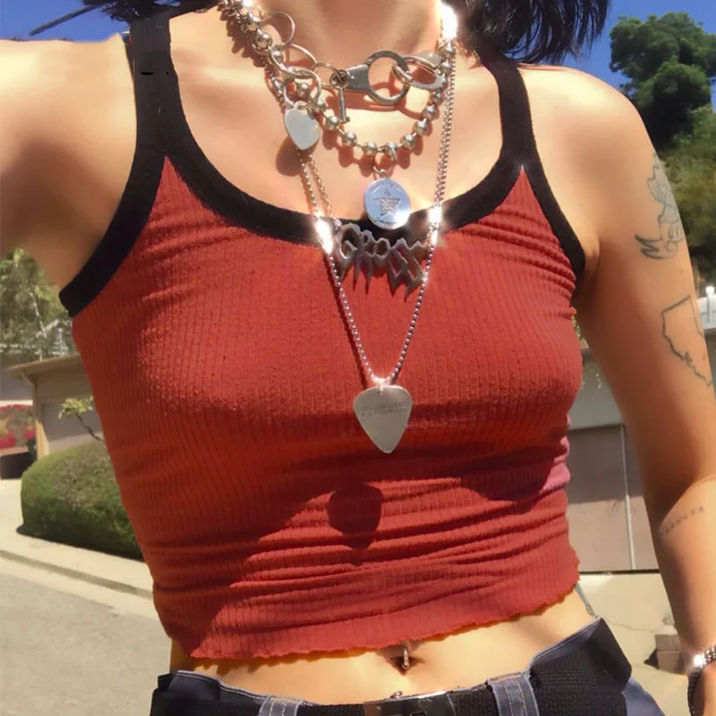 Новинка лета 2020, модная майка контрастных цветов, женская повседневная одежда для фитнеса, топ на бретельках без бретелек с открытыми плечами
