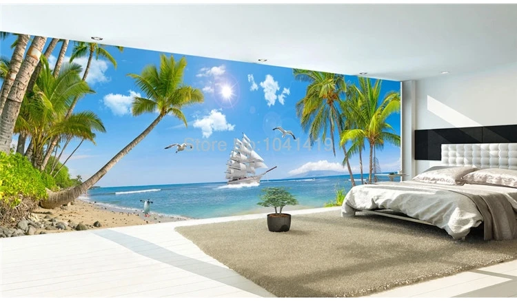 На заказ любой размер настенная бумага 3D вид на море кокосовое дерево пейзаж фото настенная бумага Гостиная ТВ диван спальня Papel де Parede