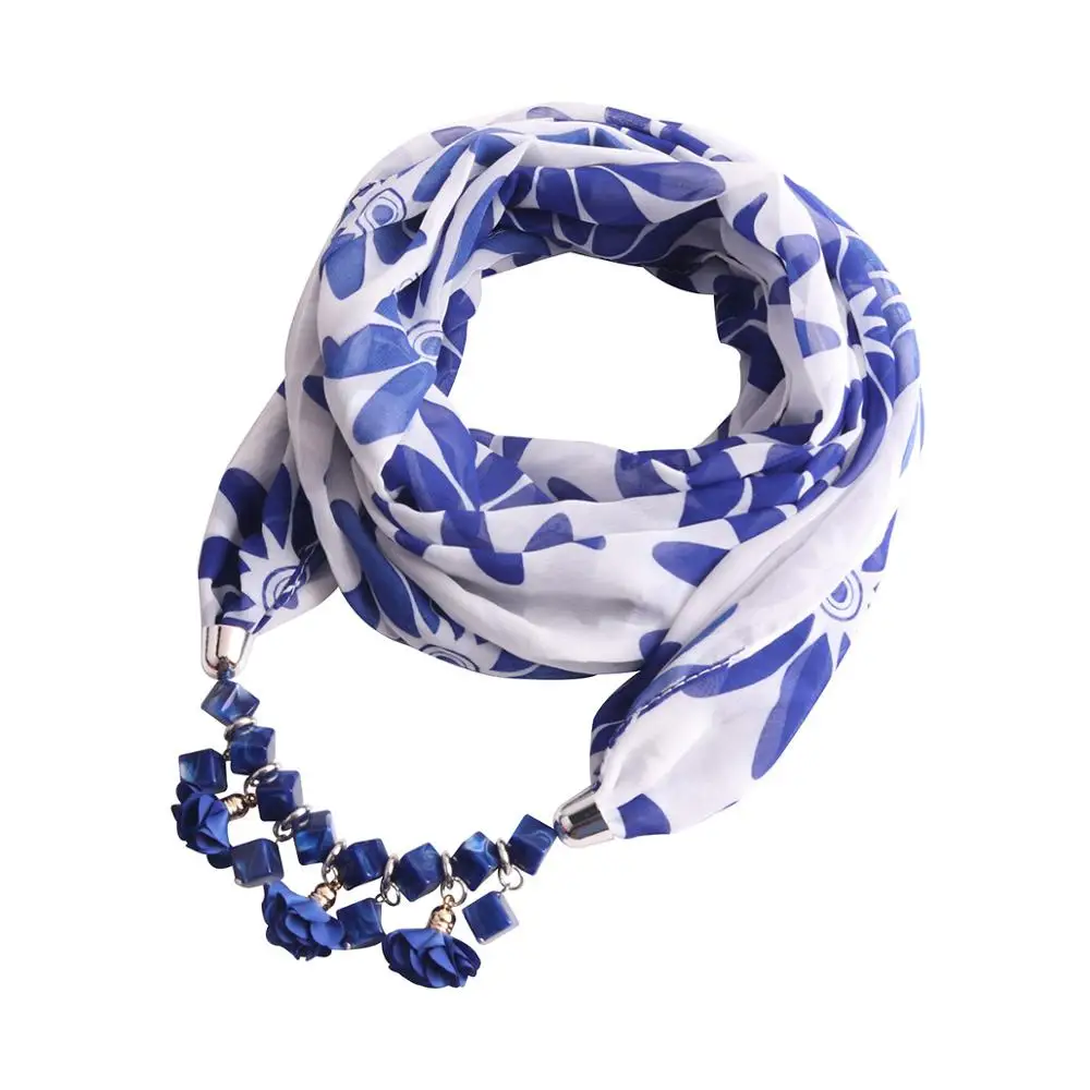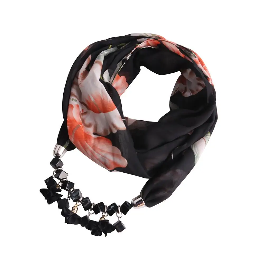 Женский шифоновый нагрудник с принтом, квадратный тканевый цветок из смолы, ожерелье, шарф с подвеской, новые популярные аксессуары для шарфов